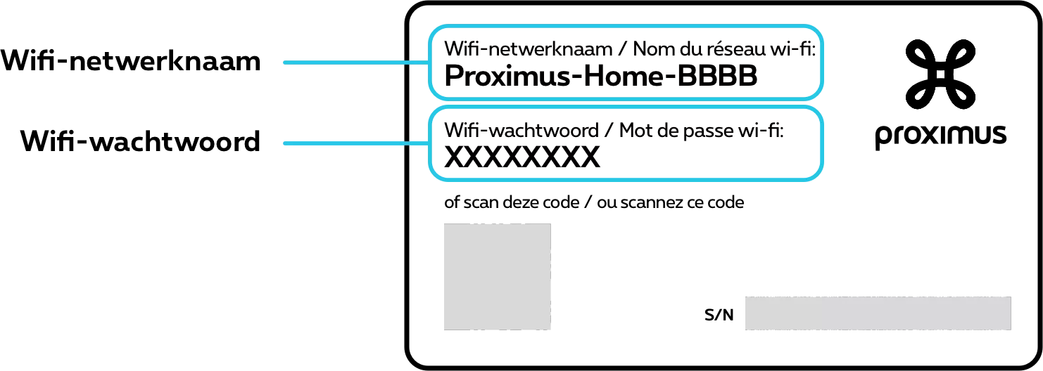 Je vindt de wifi-toegangscodes op het label op de onderkant van je b-box. Praktisch wanneer je vrienden op bezoek komen en willen surfen!