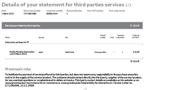 Proximus collects the amounts (including VAT) and transfers them to the external service providers