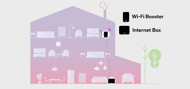 Enjoy a smooth connection throughout your house thanks to Mesh technology. Our Booster automatically optimizes the coverage and performance of the Wi-Fi network in your home.