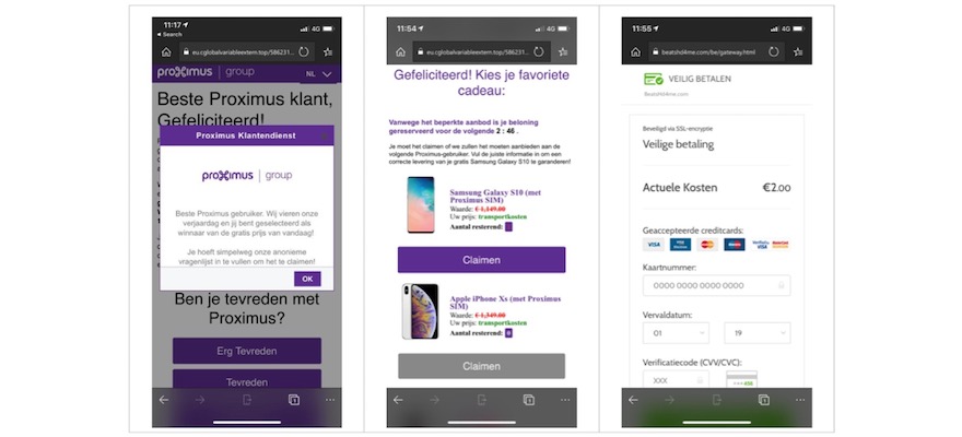 Par exemple, vous avez soi-disant gagné un smartphone ou un beau voyage et vous n'avez que quelques minutes pour « réclamer » le prix. Pour ce faire, vous devez cliquer sur un lien et payer une somme ridicule en ligne. Ou vous devez donc fournir toutes les données nécessaires au paiement. Ou répondre à une courte enquête. Toujours via un faux site web, qui semble très fiables.