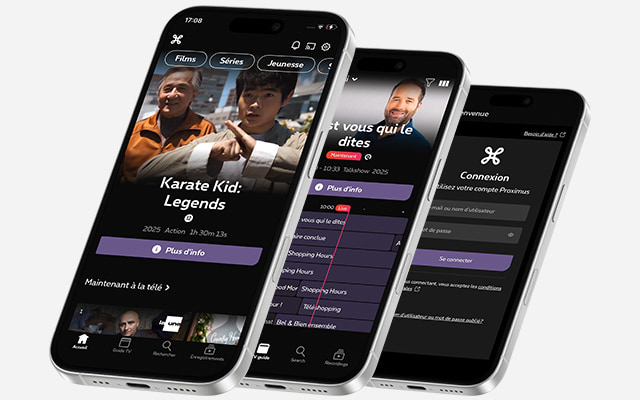 - Sur vos smartphones et tablettes, avec l’app Proximus Pickx