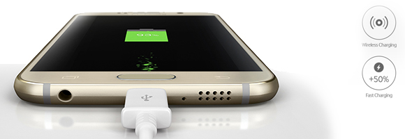 La vitesse de chargement du Samsung Galaxy S6 est ultrarapide – jusqu'à 1,5 fois plus rapide que les précédents modèles. Profitez également du plaisir de la recharge sans fil : pour le recharger, déposez simplement votre Galaxy S6 sur son socle de chargement. Le Samsung Galaxy S6 procure un sentiment de sécurité incomparable grâce à l'encodage virtuel de vos données. Il propose trois solutions performantes de sécurité: Samsung KNOX, un scanneur d'empreinte digitale et un service de carte de crédit virtuelle.