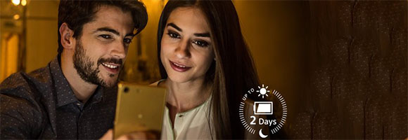 Faites des photos de pro à l'aide de son appareil de 21,5 MP avec autofocus hybride permettant une vitesse d'obturation de 0,25 seconde. Avec son appareil photo frontal de 13 MP avec autofocus extrêmement précis et son mode HDR, le Sony Xperia M5 est le smartphone idéal pour les selfies. Lorsque votre sujet est trop éloigné, le zoom à image nette 5x vous en rapproche, sans aucun compromis sur la qualité d'image. Si 2 jours d'autonomie de batterie ne vous suffisent pas, vous pouvez multiplier par 4 le temps de veille de votre Xperia grâce au mode Veille prolongée et gagner 14 % de temps d'utilisation en activant le mode Utilisation prolongée.