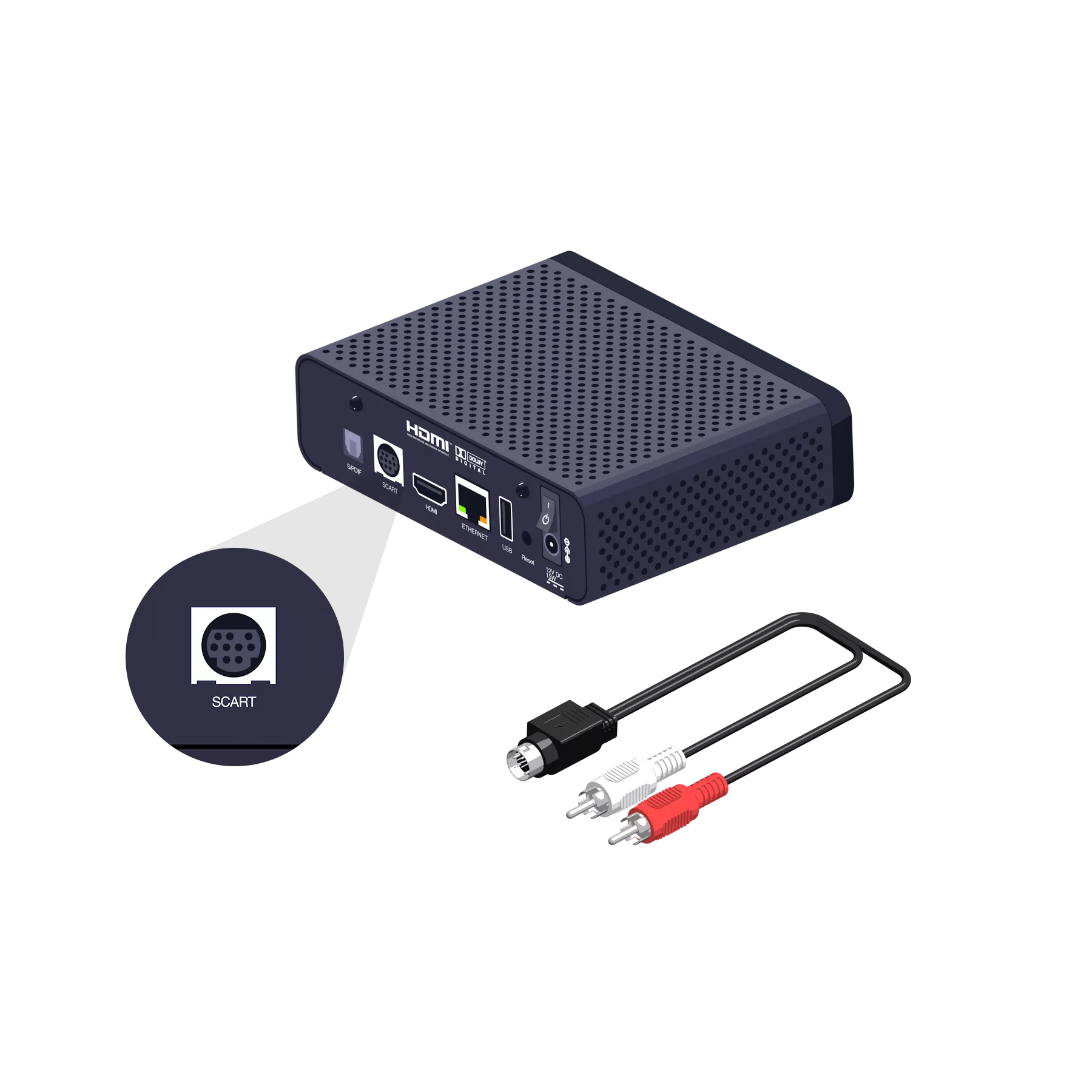 Via le port SCART (péritel) avec un câble analogique 3,5 mm (mini Jack) (v5)