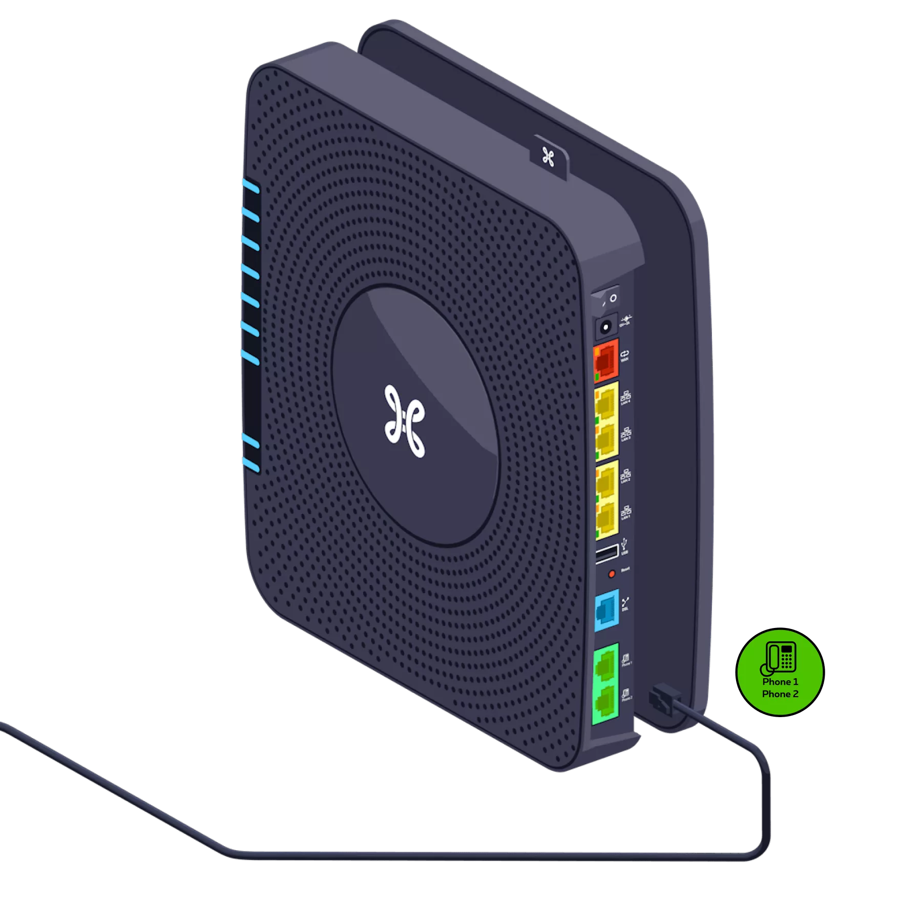 Vous pouvez connecter un téléphone analogique sur chacun des connecteurs Phone 1 et Phone 2.