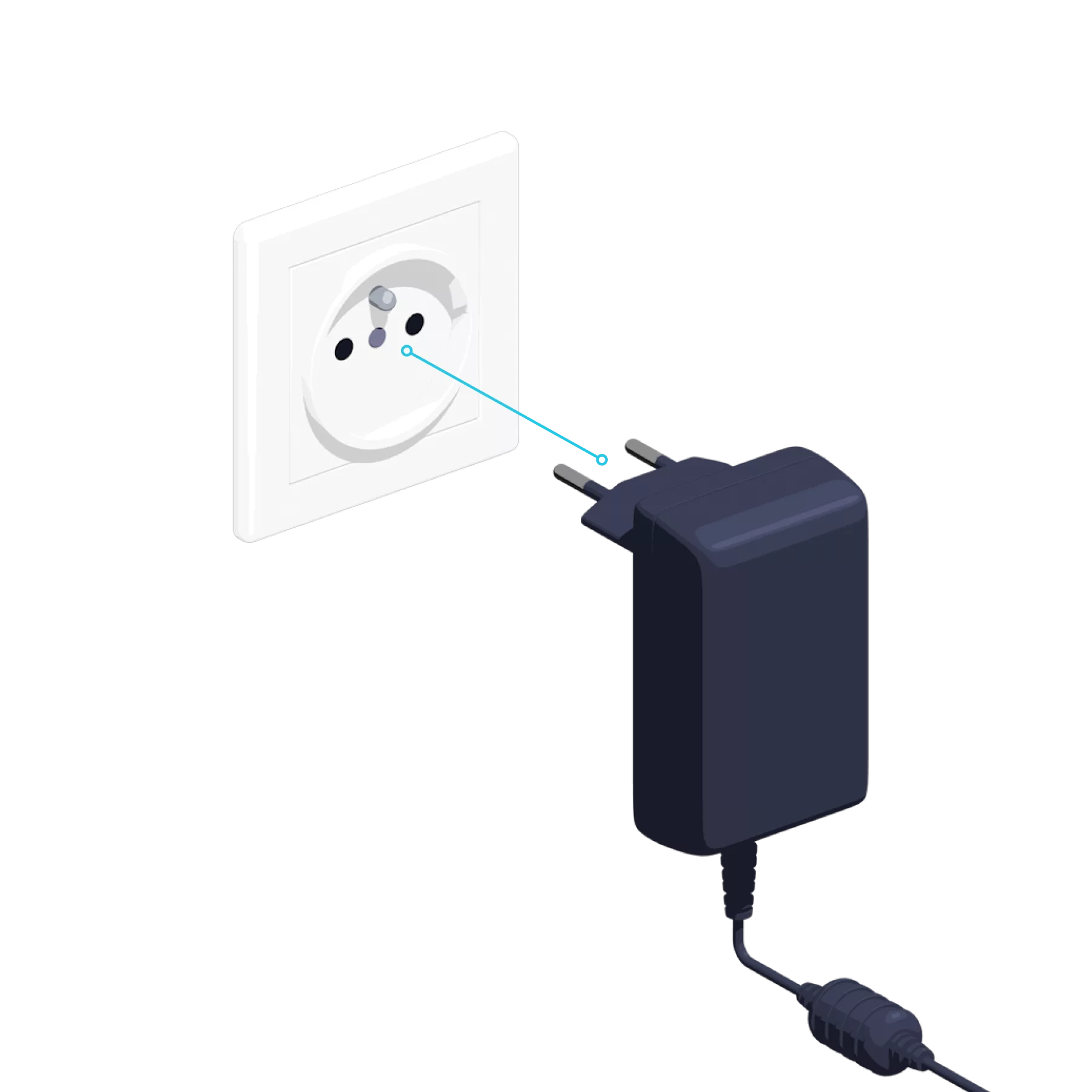 Branchez le câble d’alimentation sur votre b-box et sur une prise électrique. L’interrupteur est sur la position "I" et le témoin 'POWER' à l’avant s’allume.