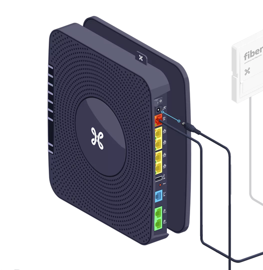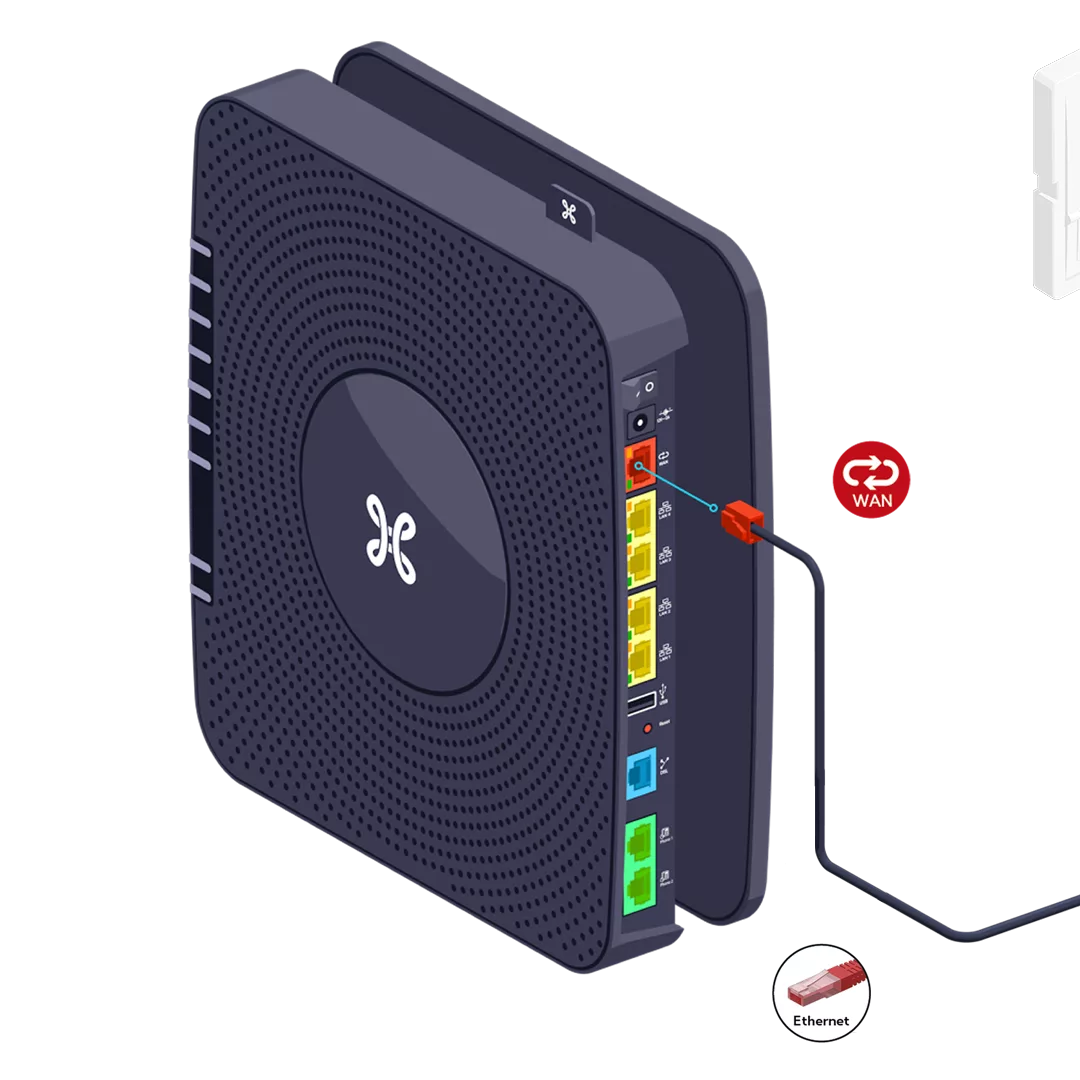 Utilisez le câble ethernet et branchez-le au port rouge WAN à l’arrière de la b-box.