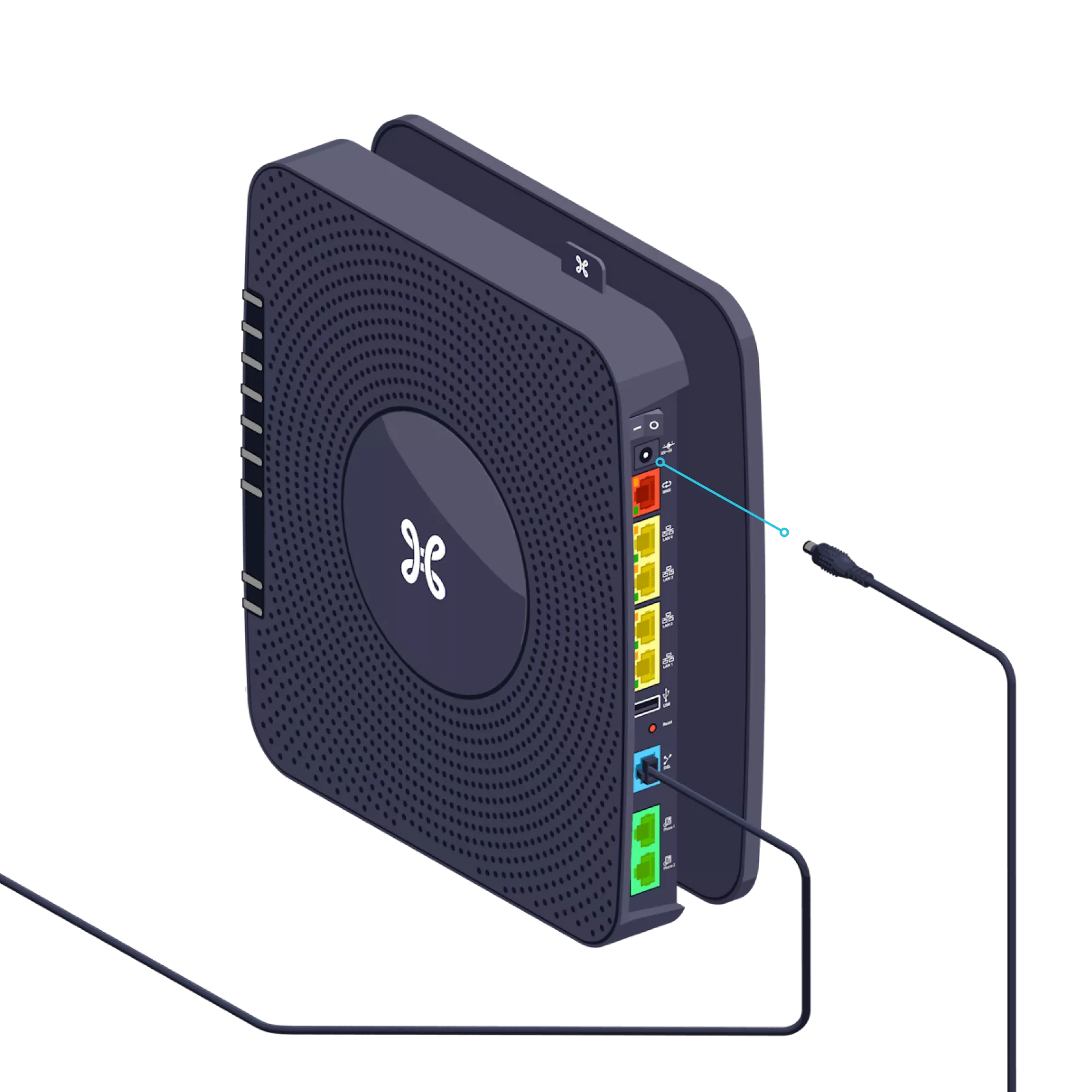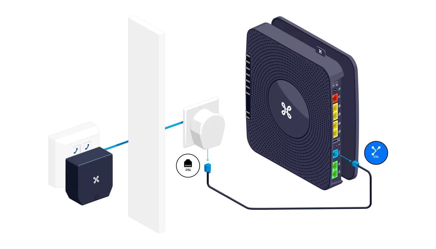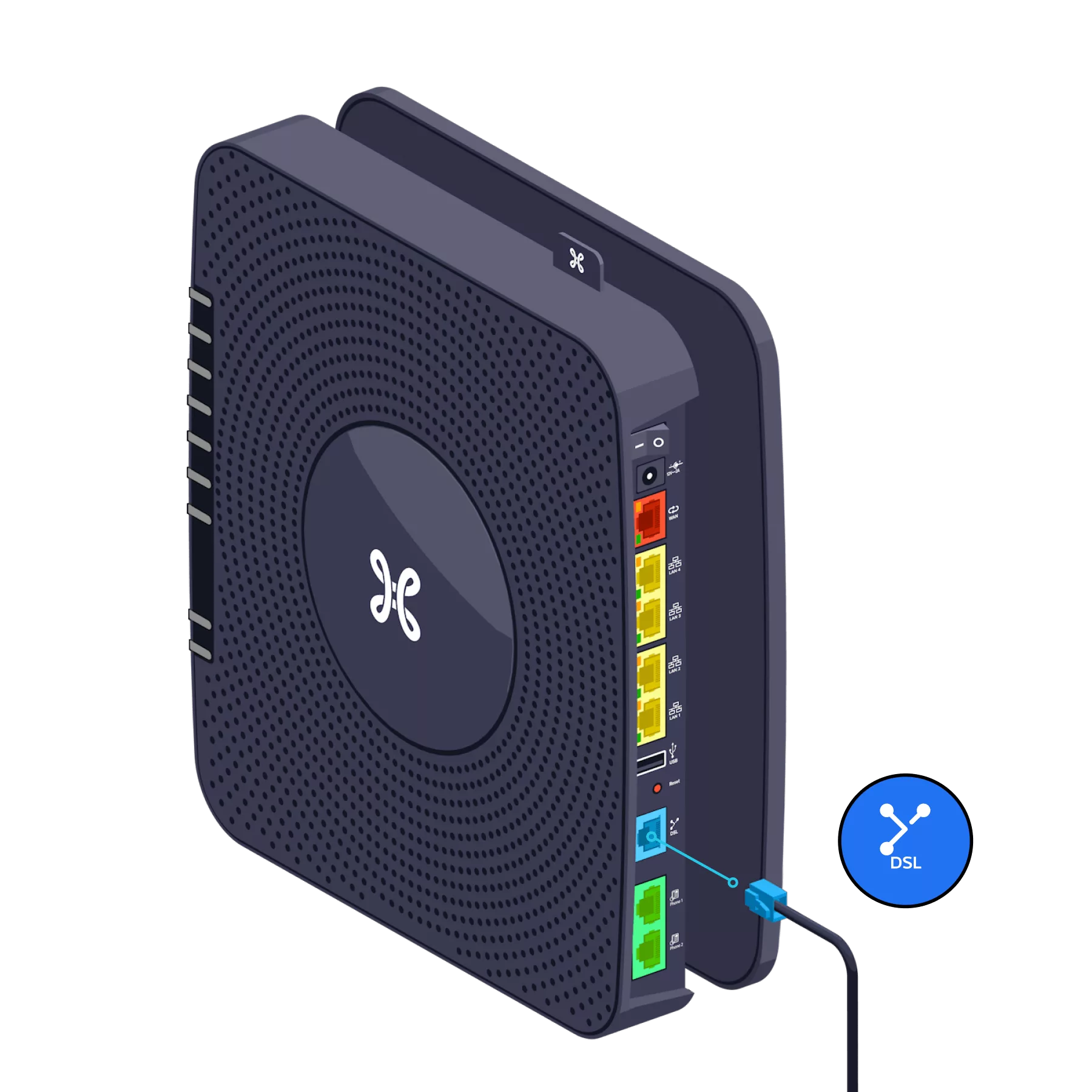 Utilisez le câble DSL et branchez-le au port bleu DSL à l’arrière de la b-box.