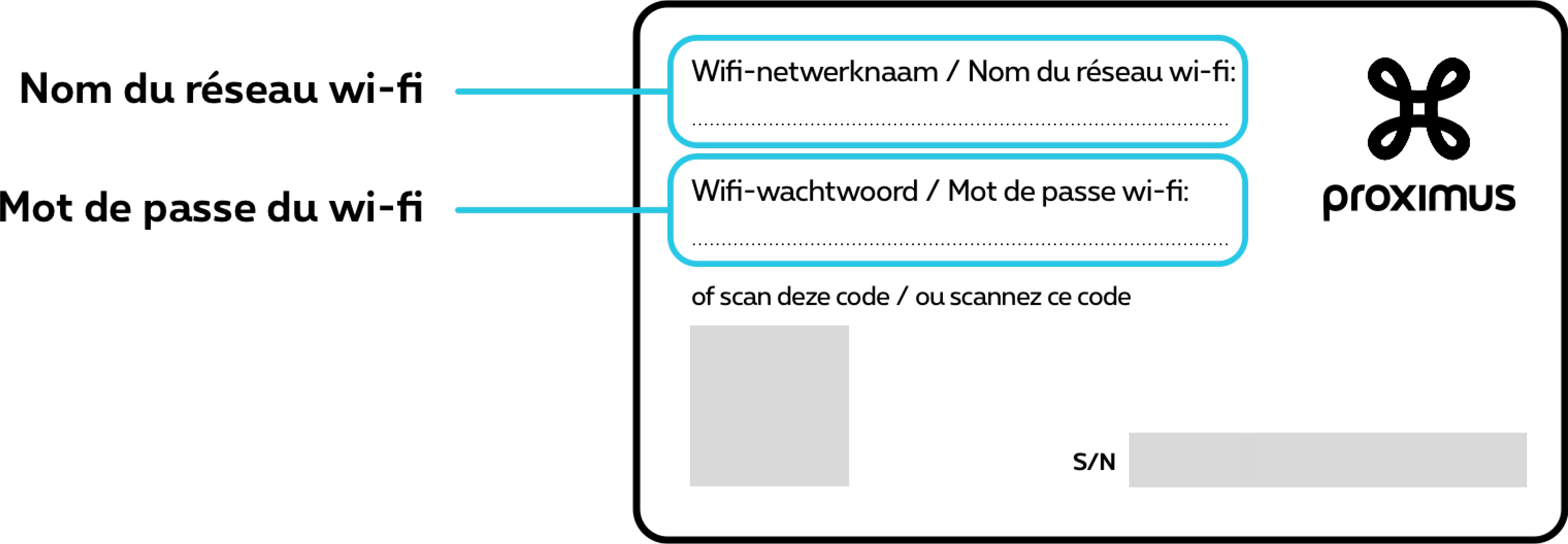 Les codes d'accès wi-fi se trouvent sur l'étiquette sous votre b-box. Pratique quand vos amis vous rendent visite et veulent surfer !