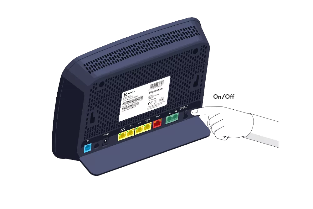 Rouge : il y a un dysfonctionnement. Veuillez redémarrer l’Internet Box. Ou connectez le câble à un autre port de l’Internet Box et redémarrez à l’aide du bouton POWER (OFF/ON).