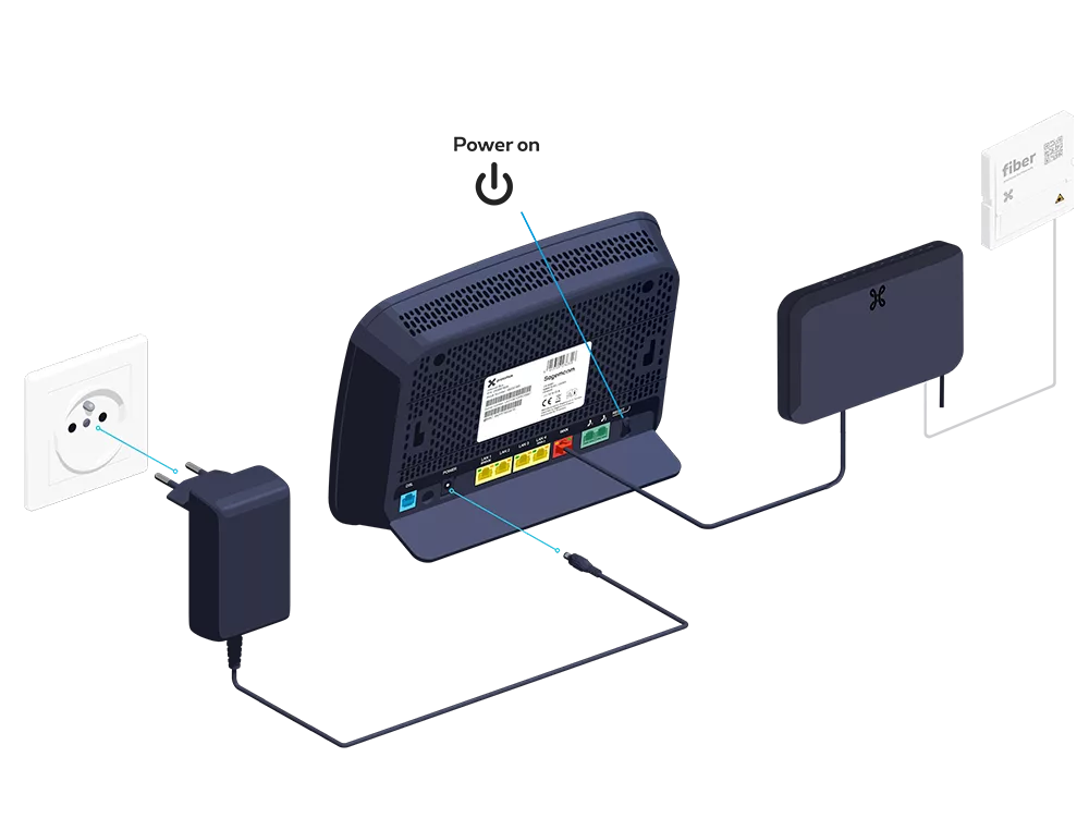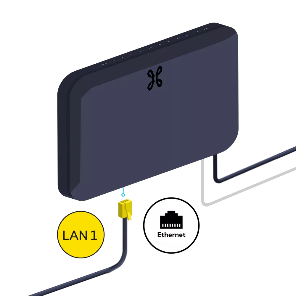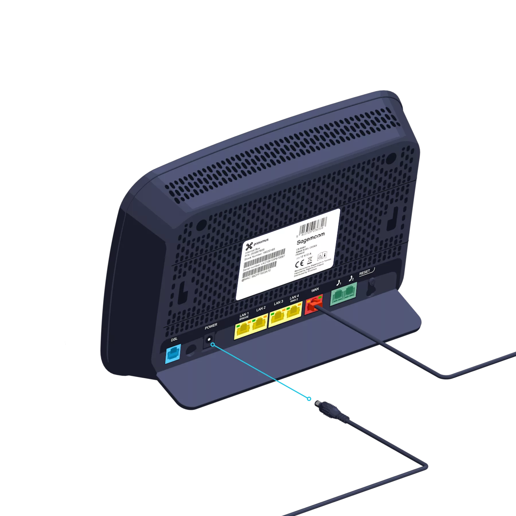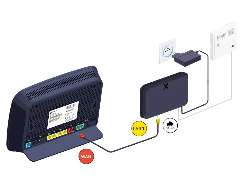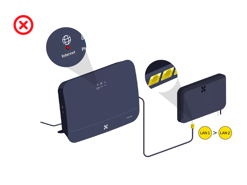- Changez le câble ethernet du modem fibre de port jaune LAN 1 > LAN 2.