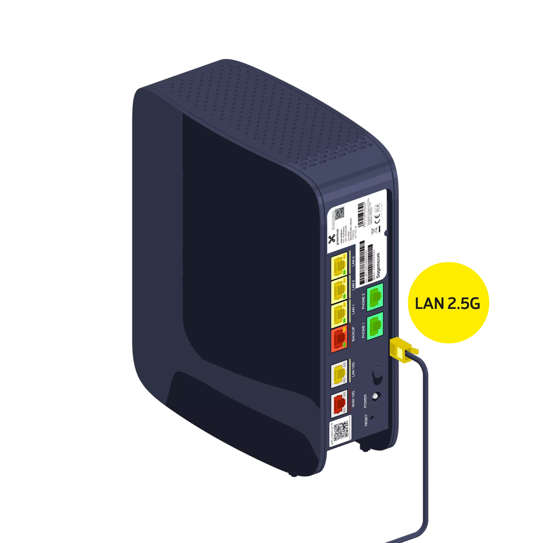 Utilisez le câble ethernet et branchez-le à l’un des ports jaunes LAN 1, 2 ou 3 à l’arrière de l’Internet Box+. Il sera configuré automatiquement après environ 30 minutes.