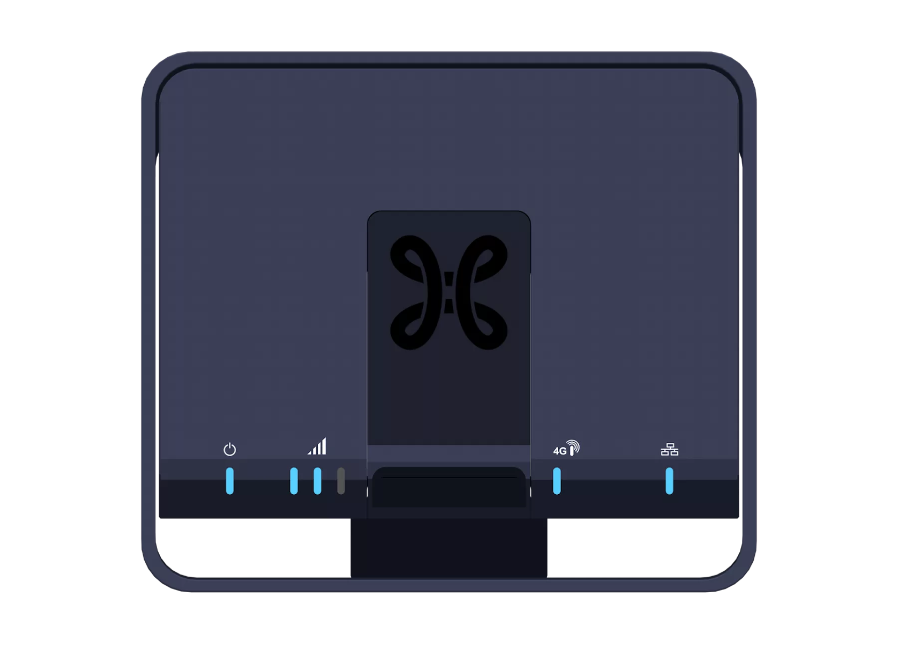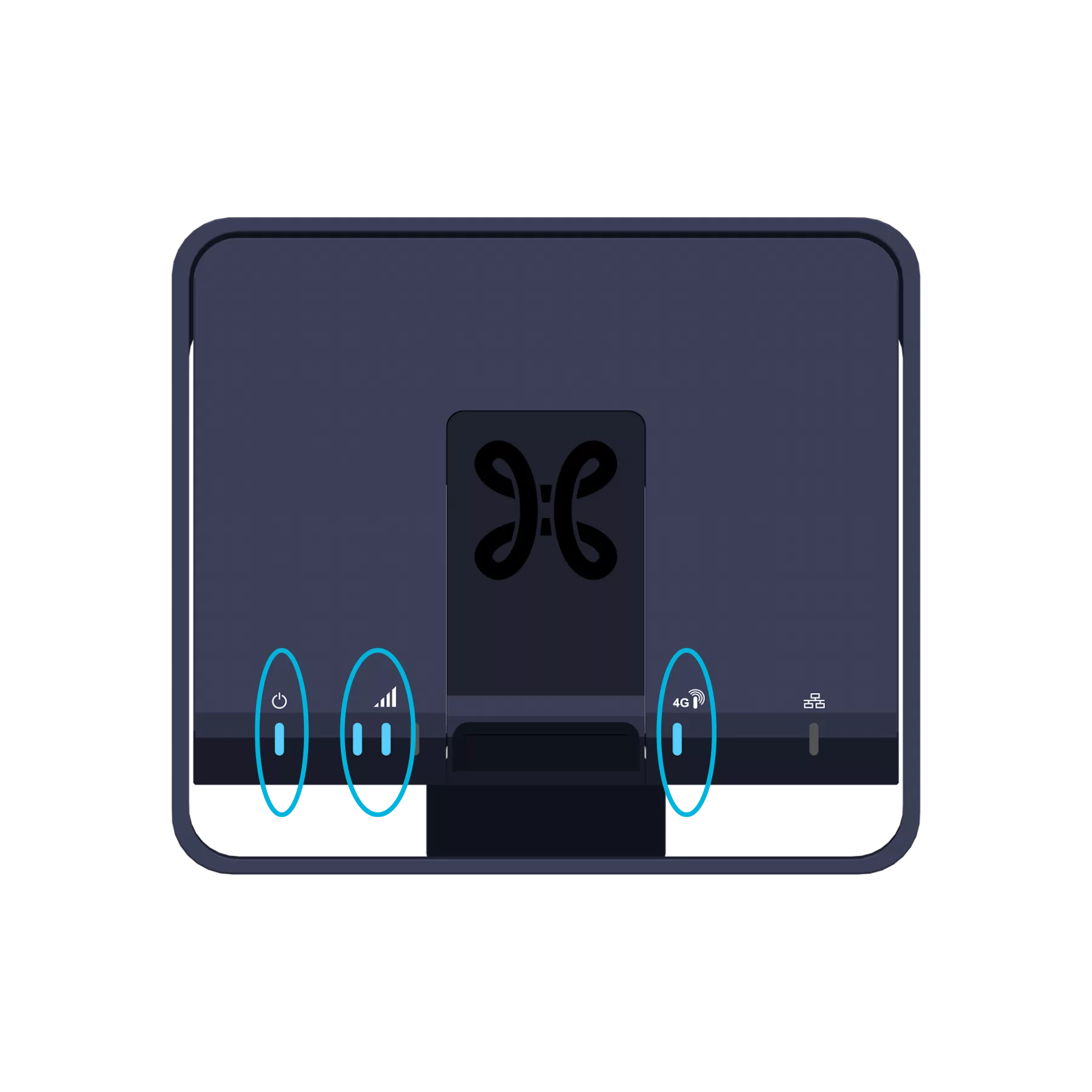 Pendant cette mise à jour, les témoins peuvent s’éteindre et s’allumer, passer du rouge au bleu… c’est normal. Une fois que les 4 témoins ci-dessous sont allumés et fixes, le modem 4G est prêt.