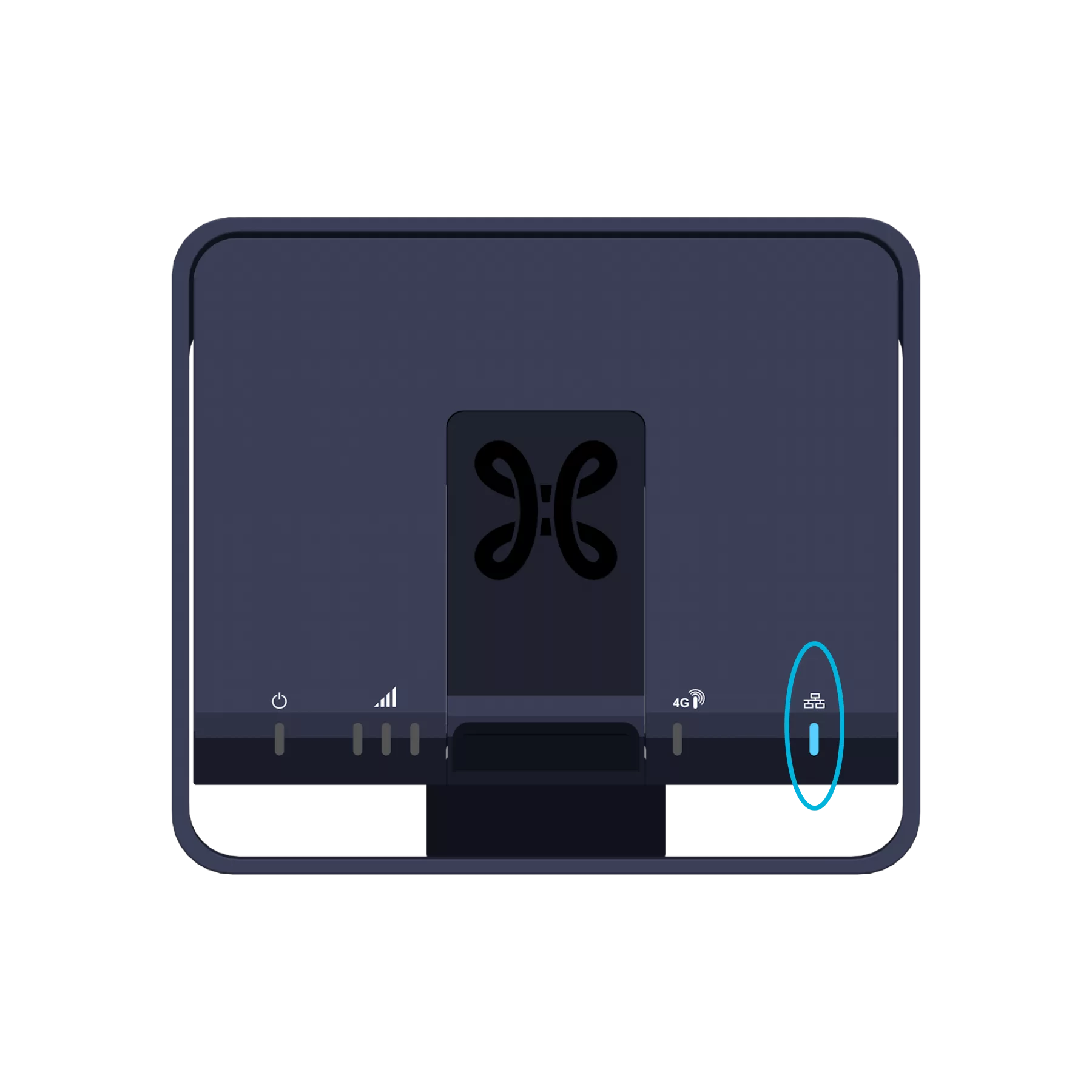 Le modem 4G peut être placé dans une autre pièce et le câble ethernet fourni peut être remplacé par un autre câble ethernet aussi long que nécessaire. Plus il y a de barres bleues allumées, meilleur sera le signal reçu.
