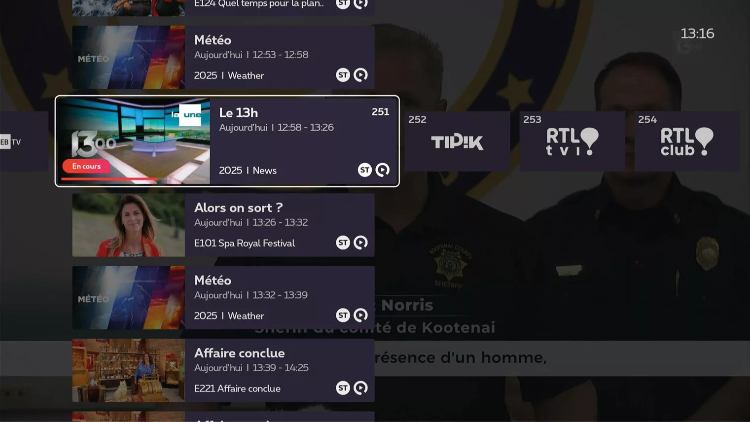 dans le guide TV vertical