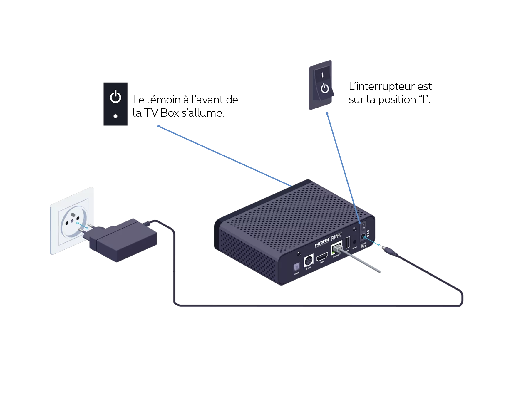 Branchez le câble d’alimentation sur votre TV Box et sur une prise électrique.