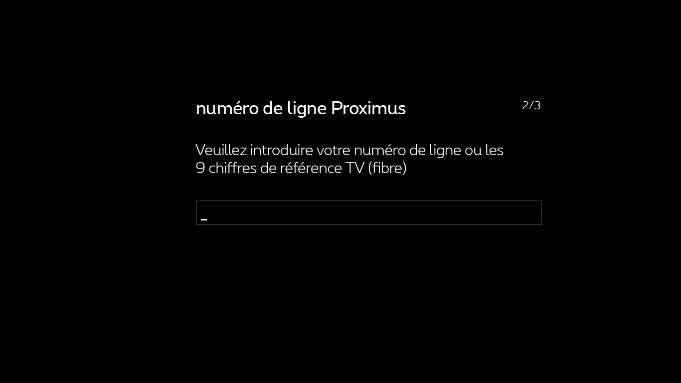 Il s’agit de votre numéro de téléphone fixe ou d’identification tel que repris dans le courrier de confirmation de l’activation de votre abonnement TV, ou si vous avez la Fibre, les 9 chiffres de référence TV.
