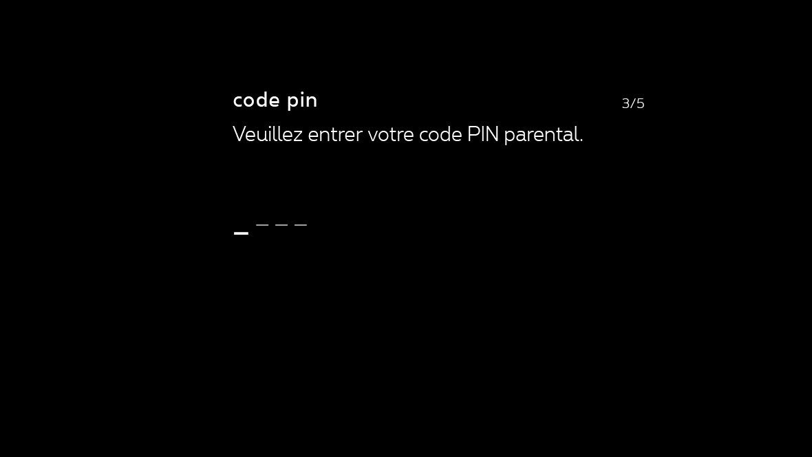 Le code PIN parental est par défaut 1234, sauf si vous l’avez déjà modifié.Vous avez introduit un mauvais numéro ? Utilisez les touches directionnelles pour vous déplacer et réintroduisez le bon code. Oublié votre code PIN ? Appelez gratuitement le 0800 99 696.