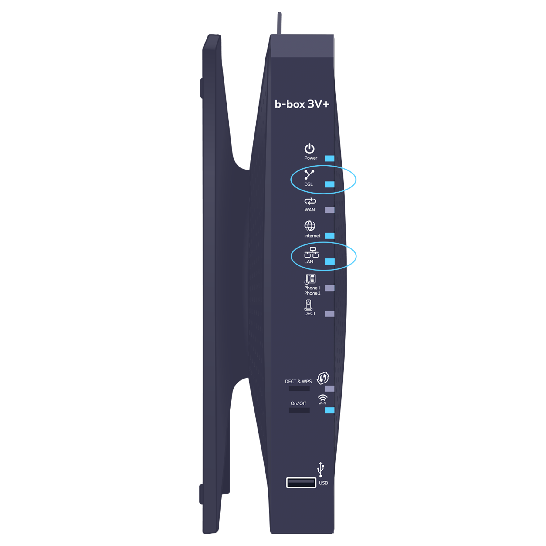 À l’avant, les témoins DSL et LAN doivent devenir bleus et fixes.