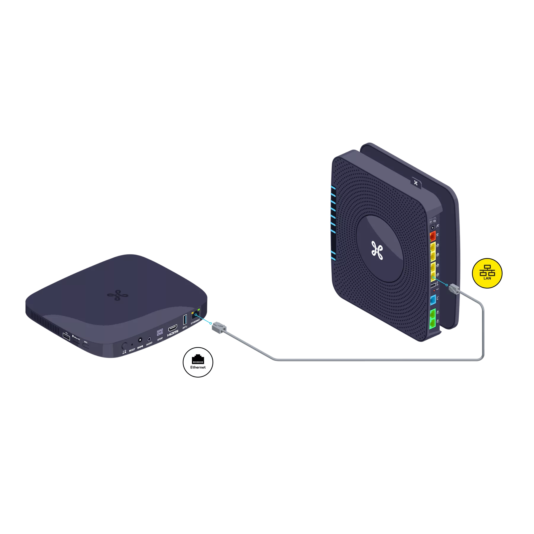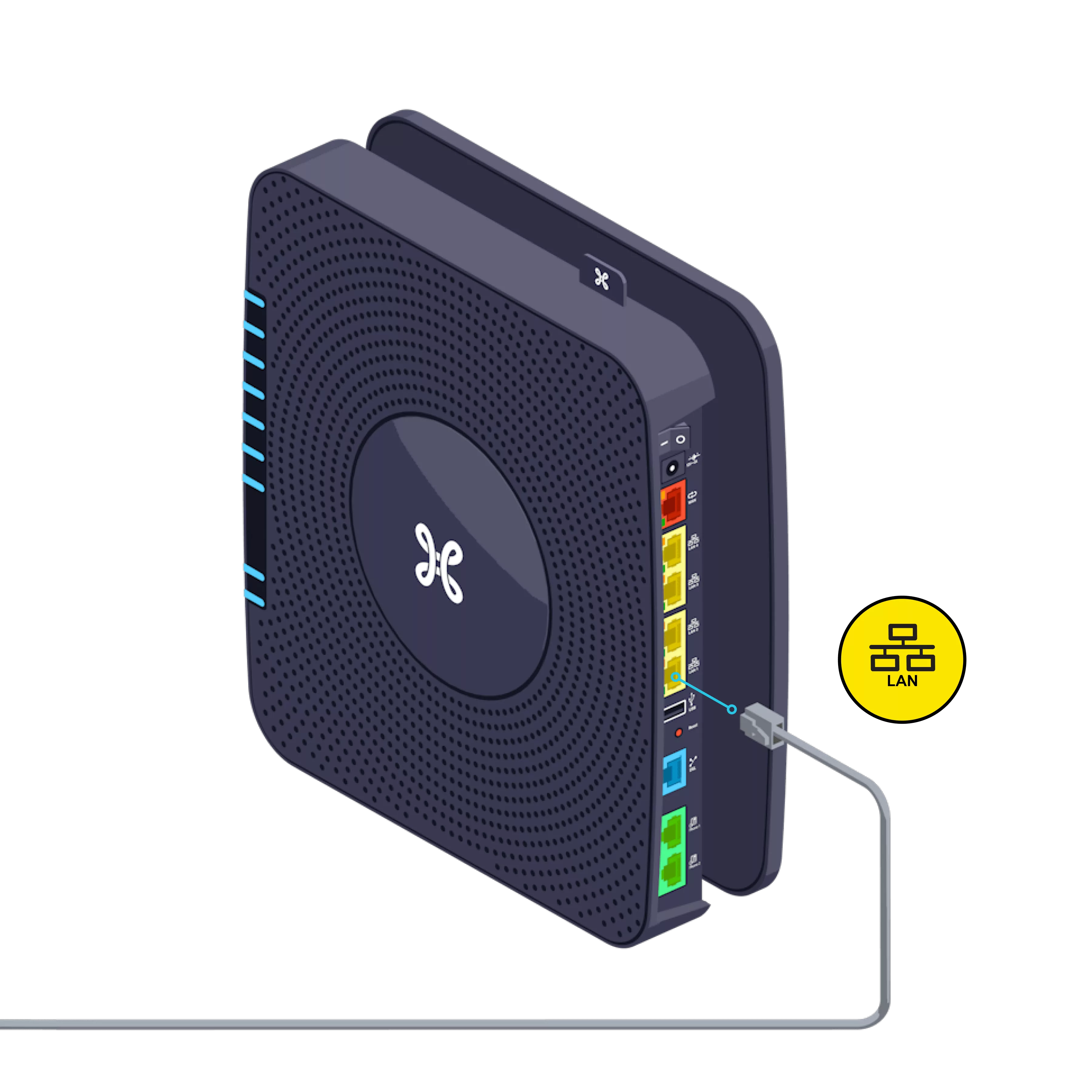 Utilisez le câble ethernet et branchez-le à l’un des ports jaunes LAN à l’arrière de la b-box.