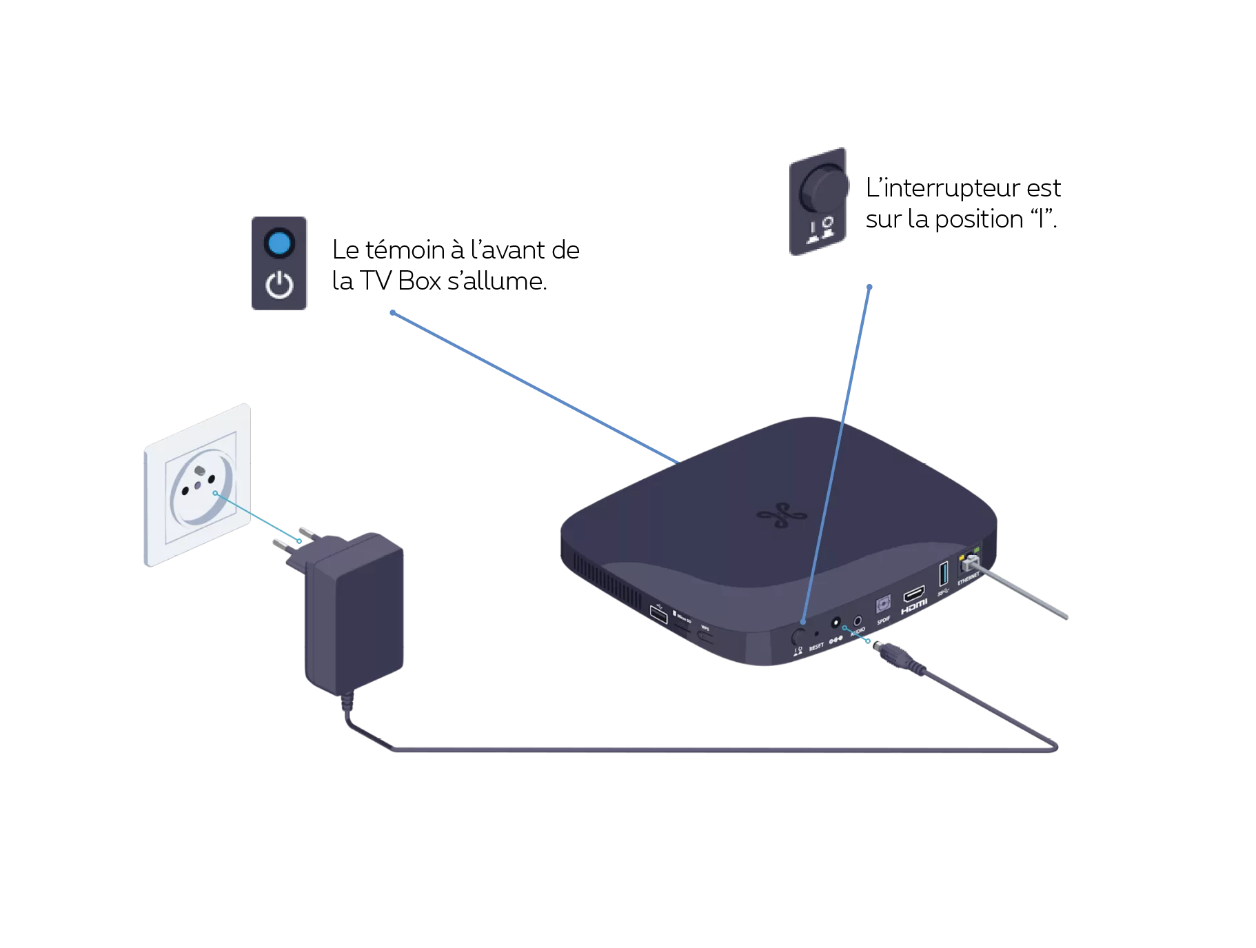 Branchez le câble d’alimentation sur votre TV Box et sur une prise électrique.