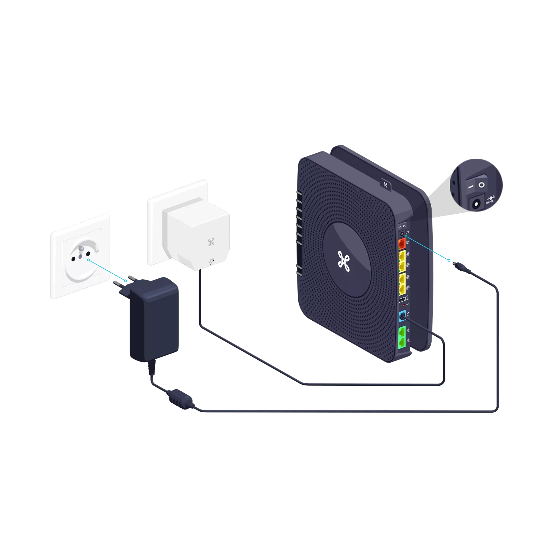 Zodra de lampjes hieronder branden, kan je je TV Box, computer en andere toestellen installeren.