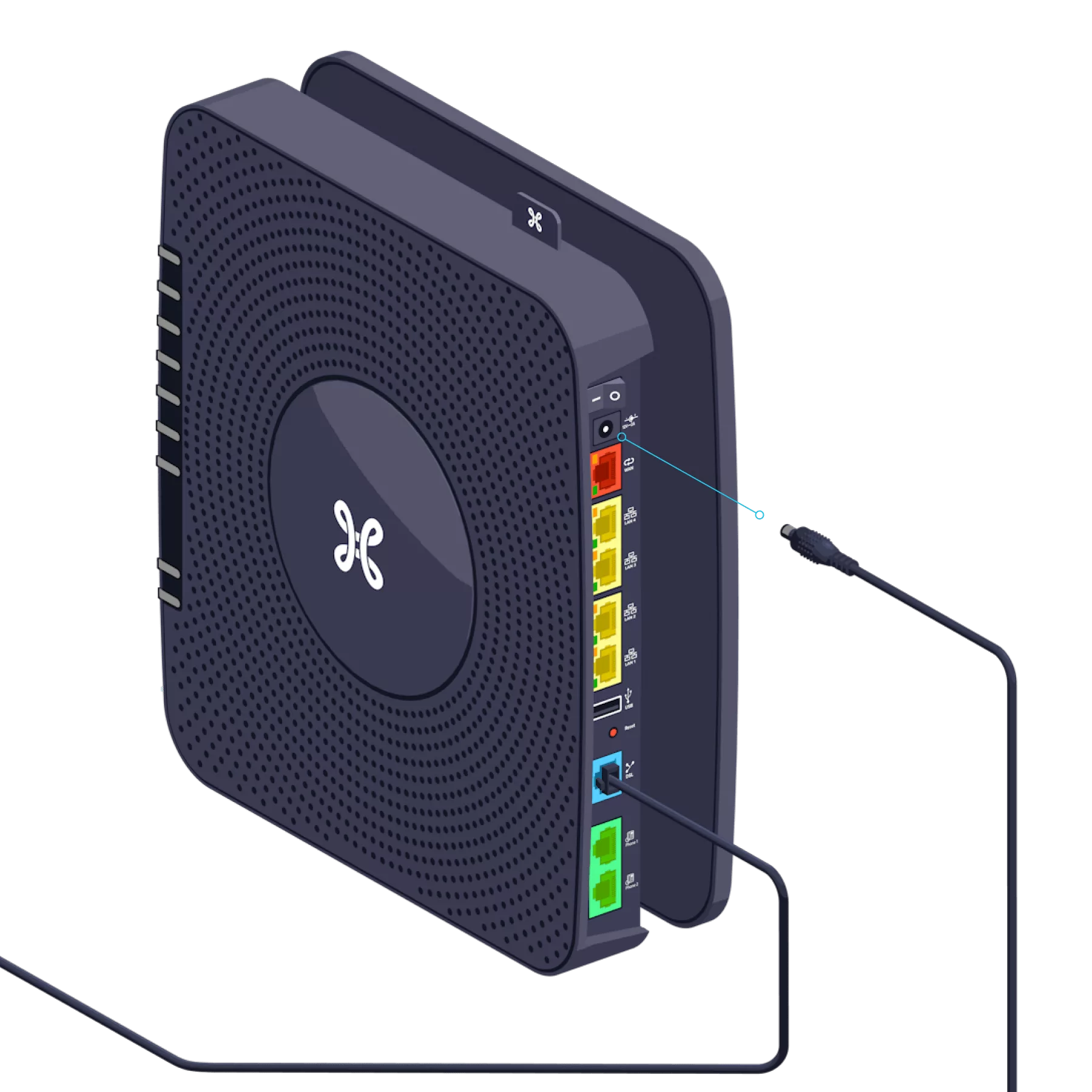 - Steek deze in de blauwe DSL-poort aan de achterkant van de b-box.