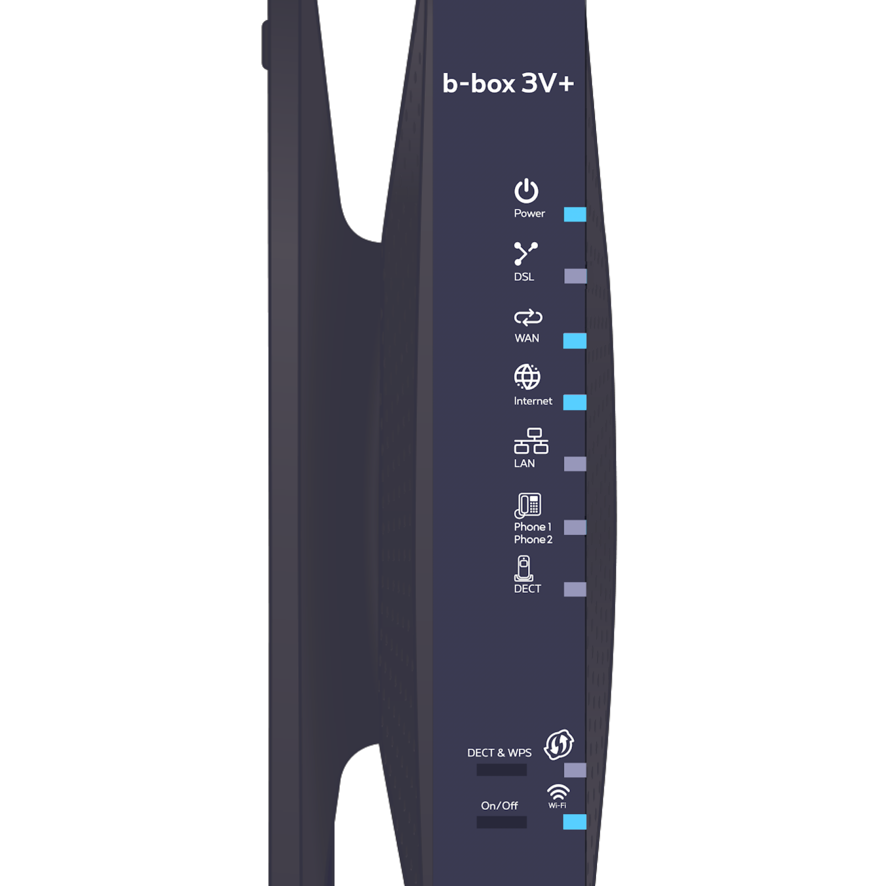 - Steek deze in de blauwe DSL-poort aan de achterkant van de b-box.