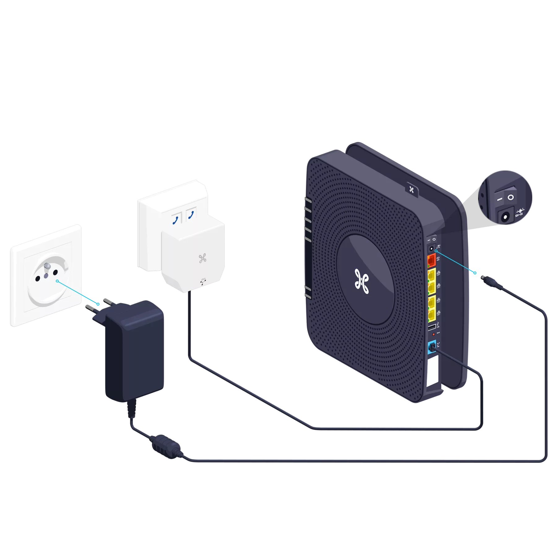 Zodra de lampjes hieronder branden, kun je je TV Box, computer en andere toestellen installeren.
