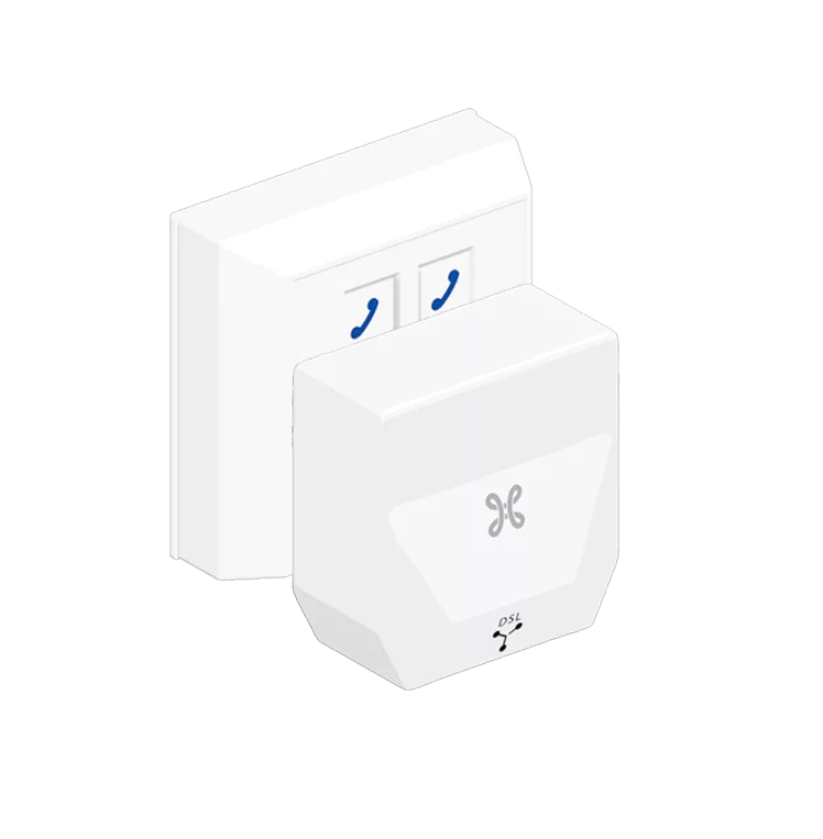 Je kan een telefoon aansluiten op de DSL-aansluitdoos.