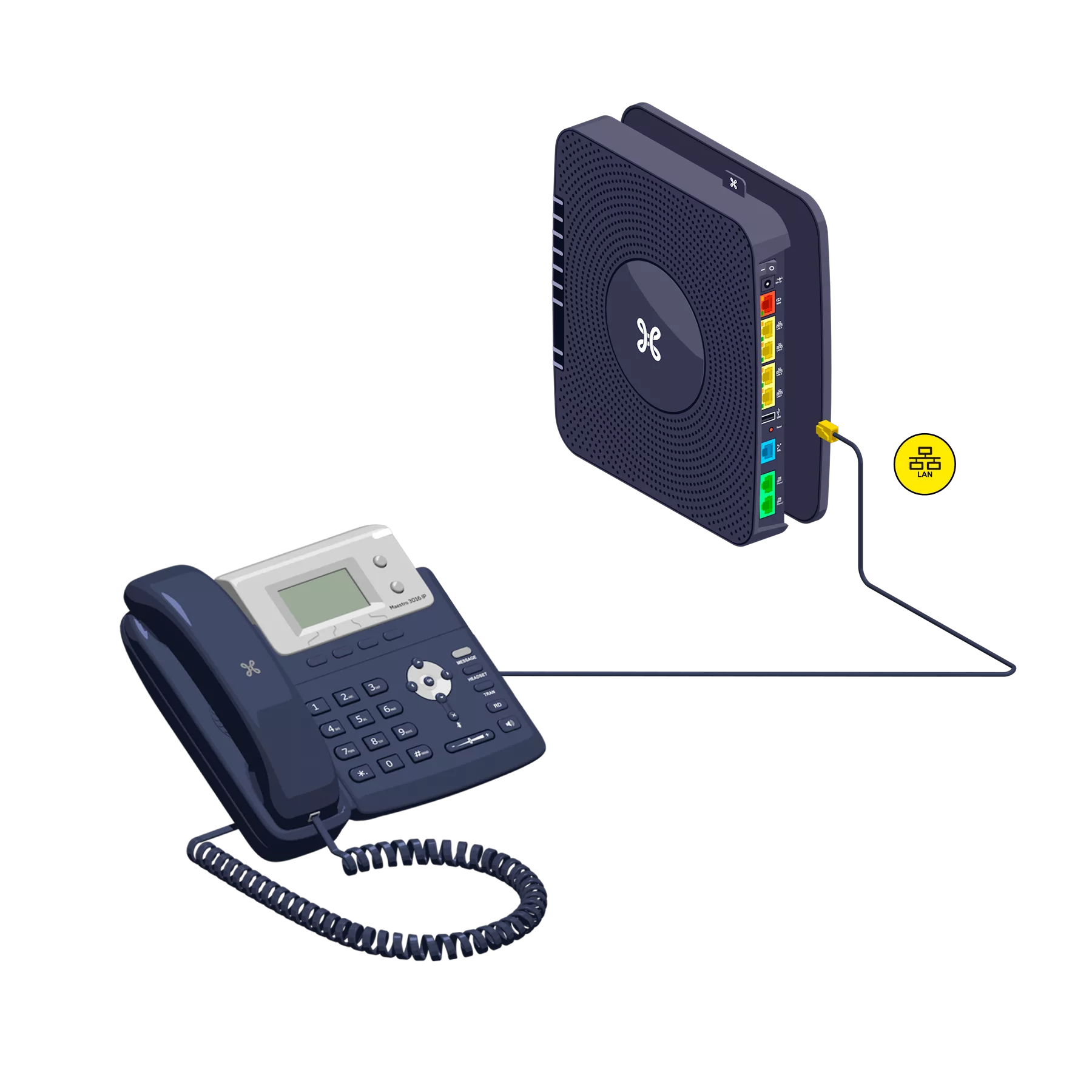 Gebruik de ethernetkabel en sluit hem op een van de gele poorten aan achteraan de b-box. Je telefoon wordt automatisch ingesteld na ongeveer 30 minuten.