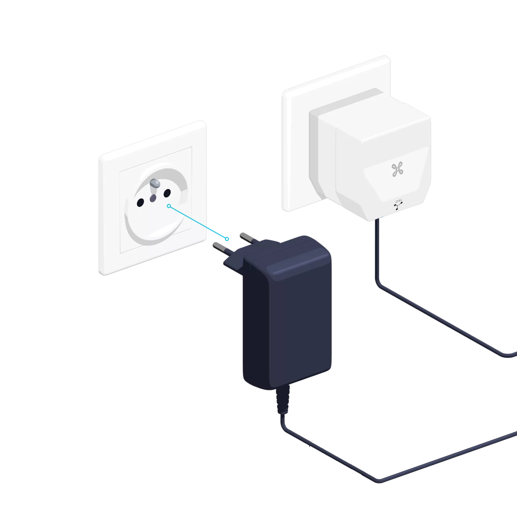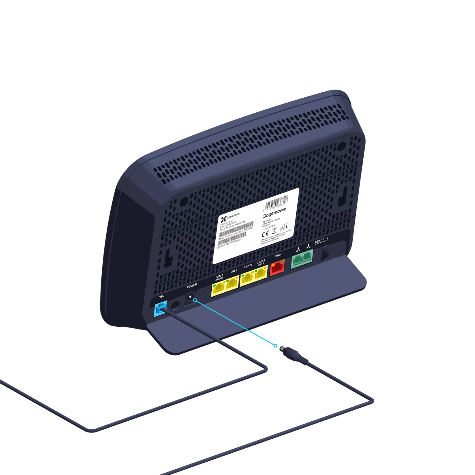 Plug de elektrische voedingskabel in je Internet Box en steek de stekker in het stopcontact.