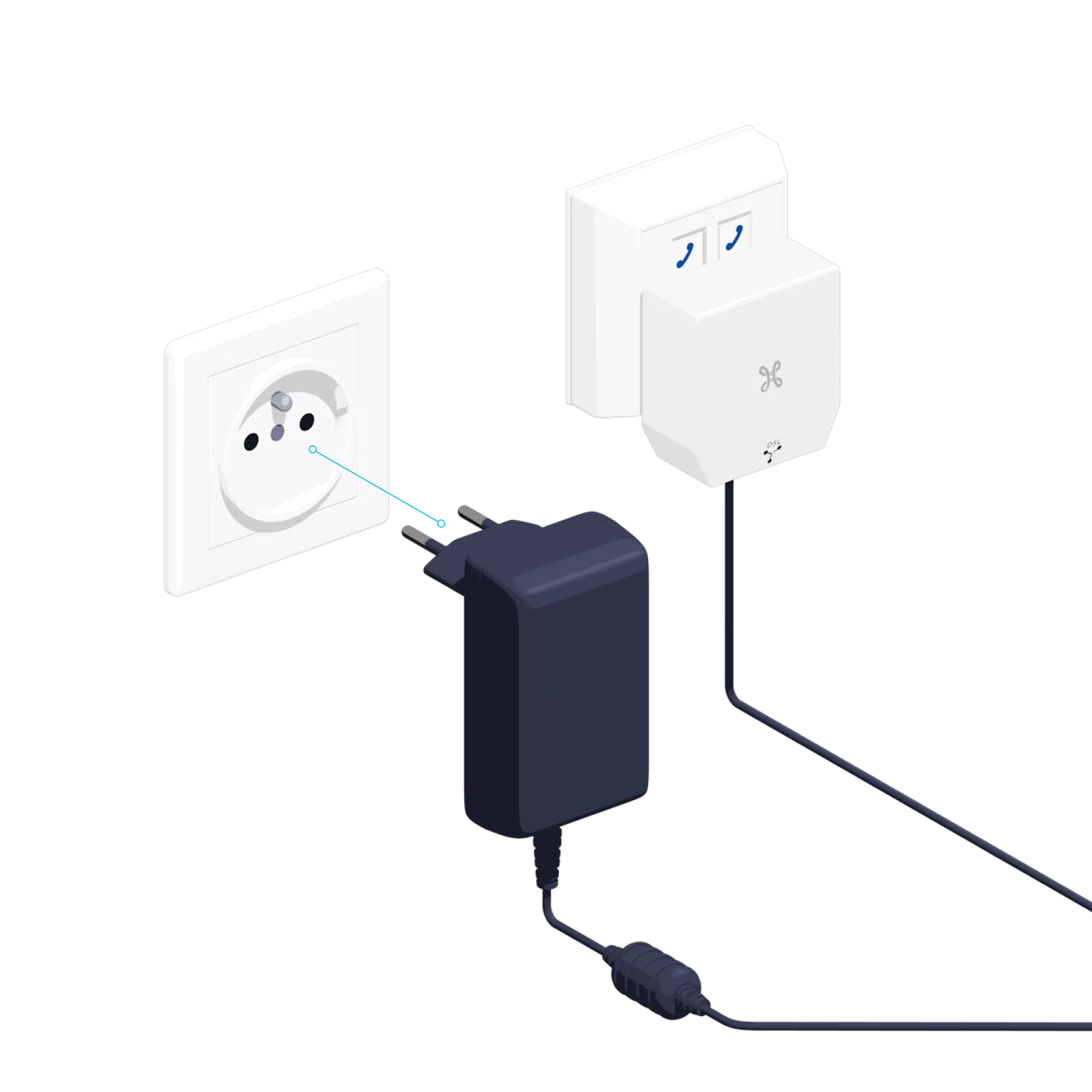 Dat materiaal (de speciale kabel bestemd voor de aansluiting van de Internet Box, het telefoonstopcontact, de telefoonstekker) is niet meegeleverd in deze doos. Het is al aanwezig in je huidige installatie of je kan het aankopen. De speciale kabel bestemd voor de aansluiting van de Internet Box is een gewone telefoonkabel (VVT-kabel of – minder aangeraden – UTP-kabel). Die is verkrijgbaar in een Proximusverkooppunt en in een vakhandel voor elektrisch materiaal. Als je een speciale kabel bestemd voor de aansluiting van de Internet Box gebruikt, check dan of deze correct aangesloten op de aansluitstekker. -