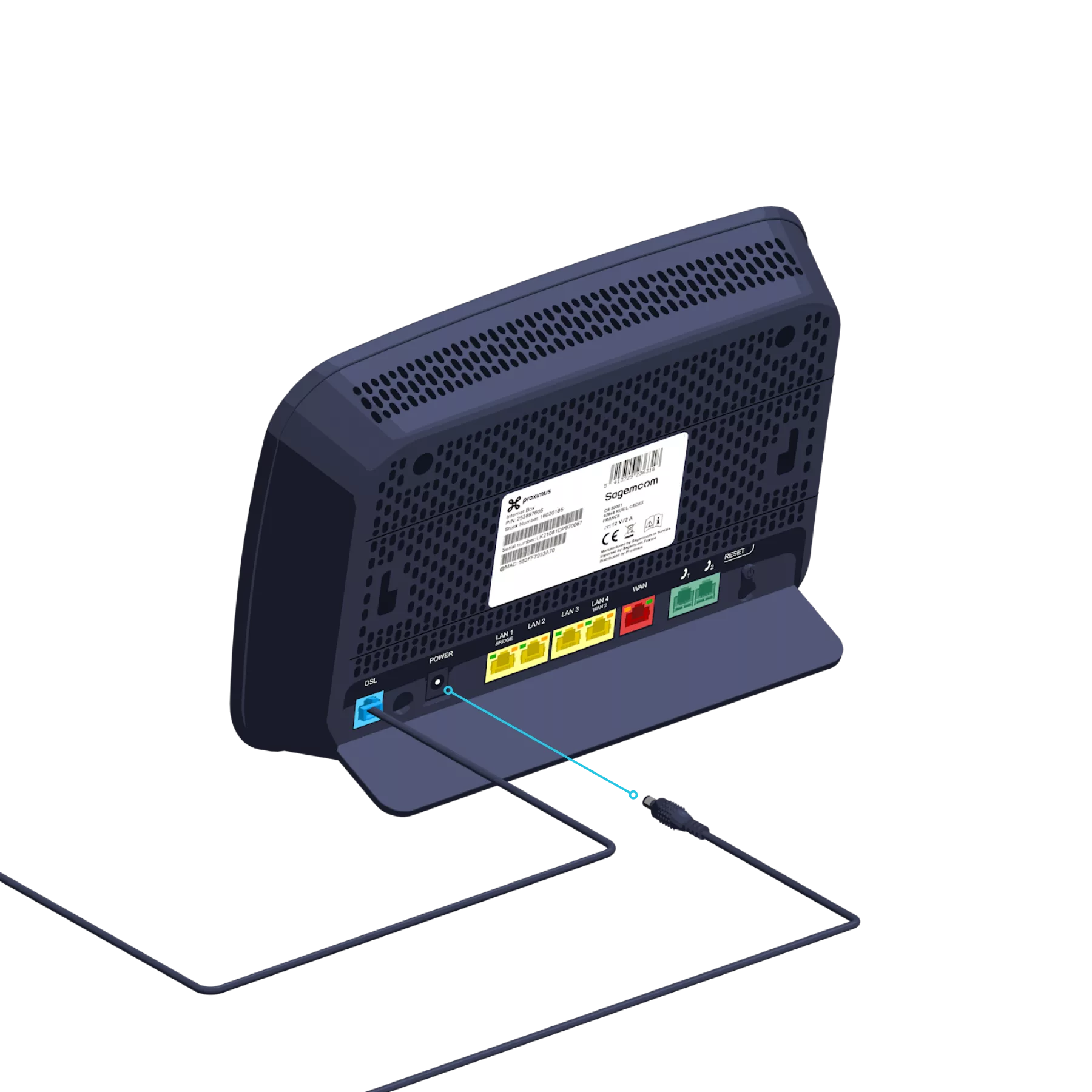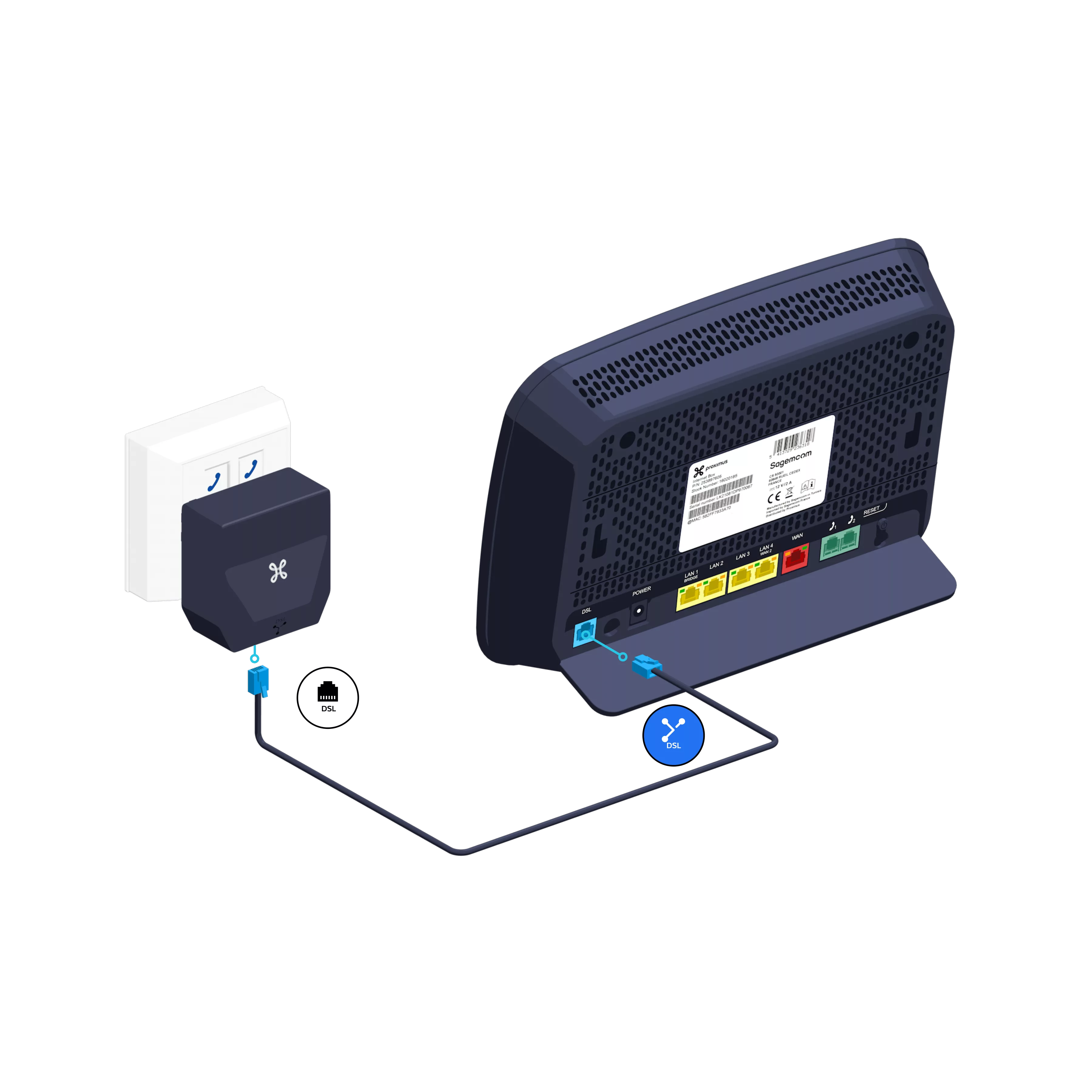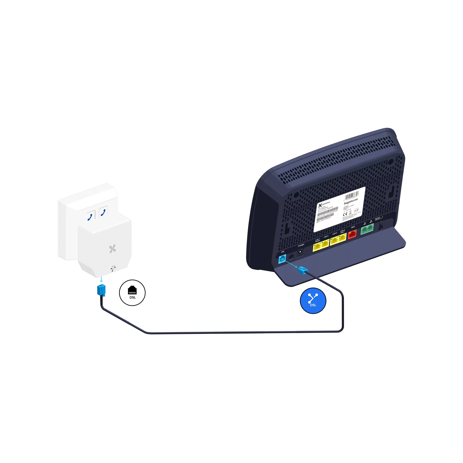 - Steek deze in de blauwe DSL-poort aan de achterkant van de Internet Box.