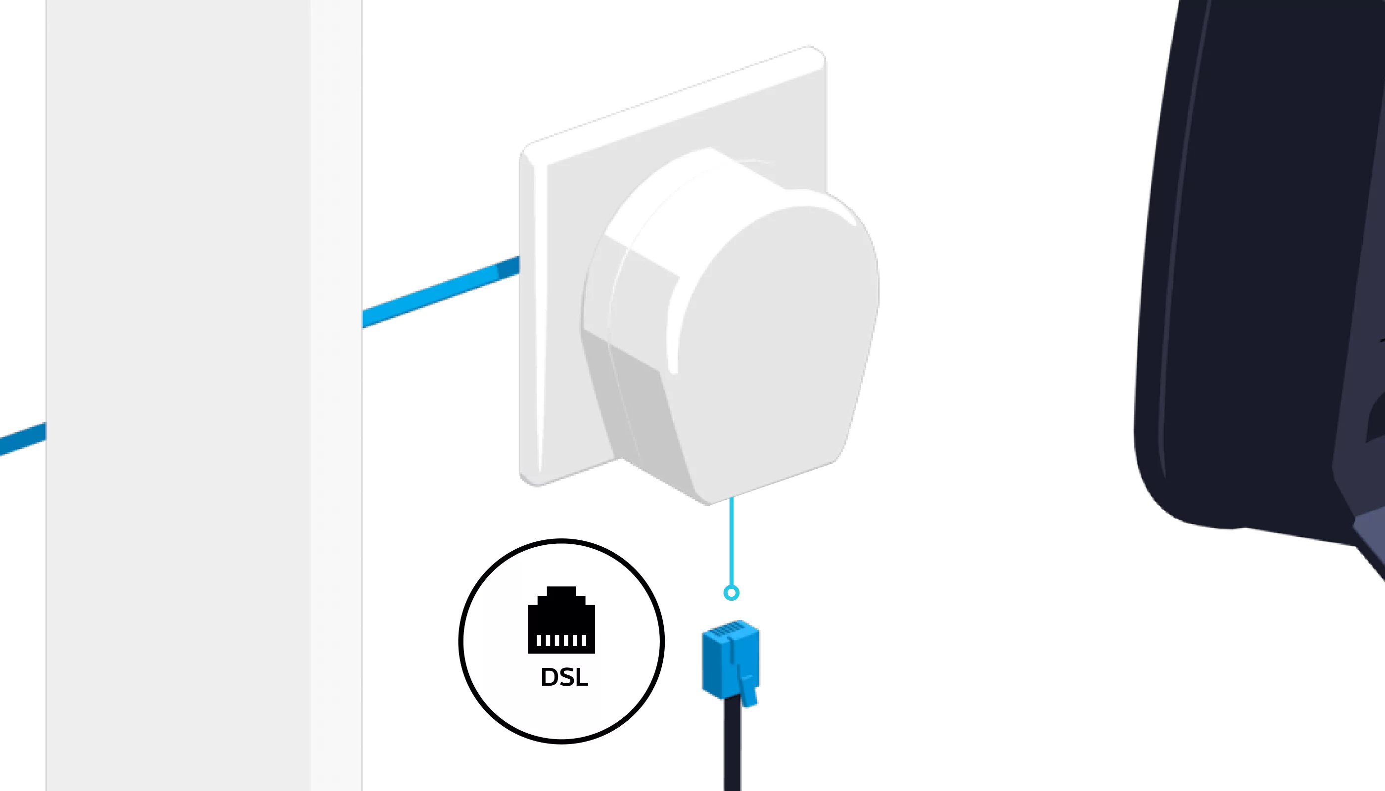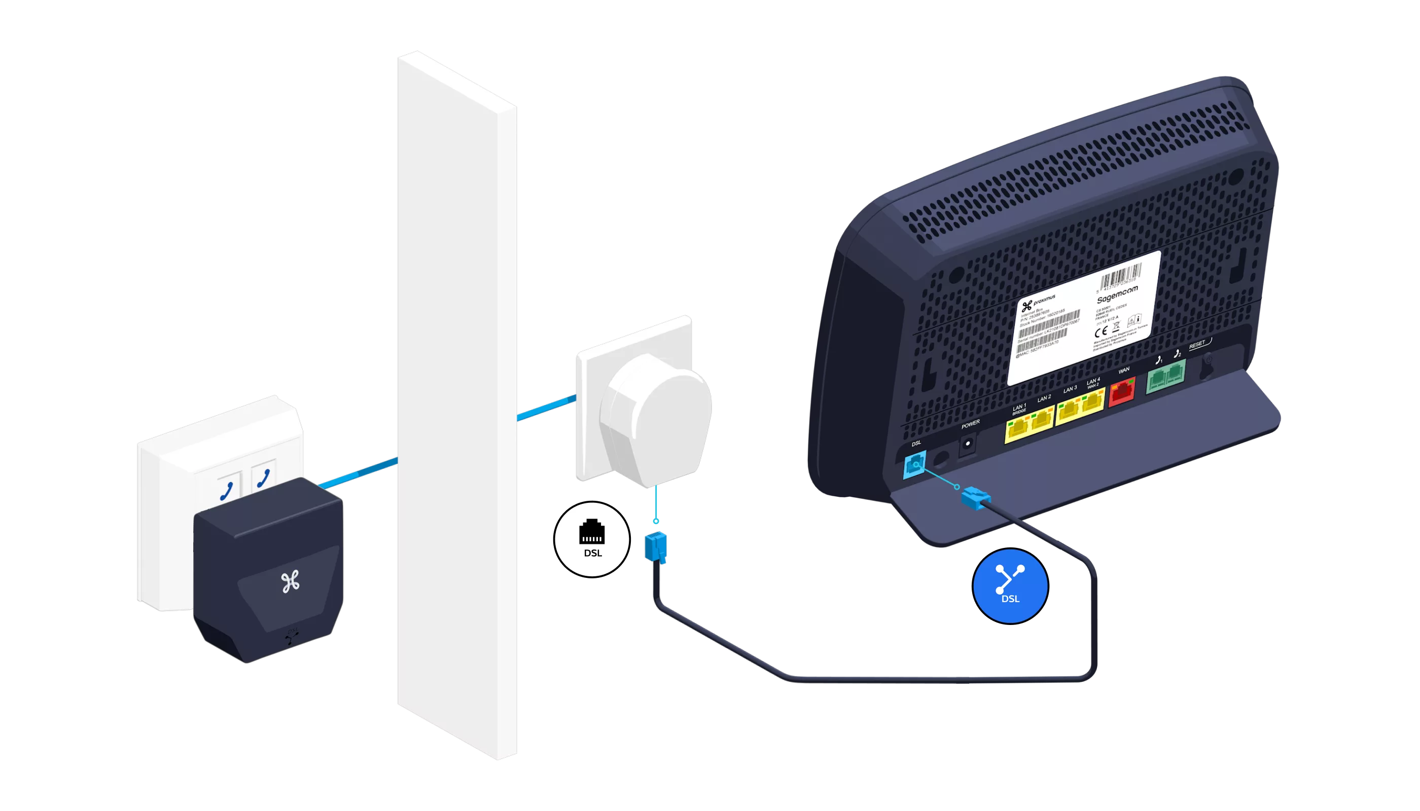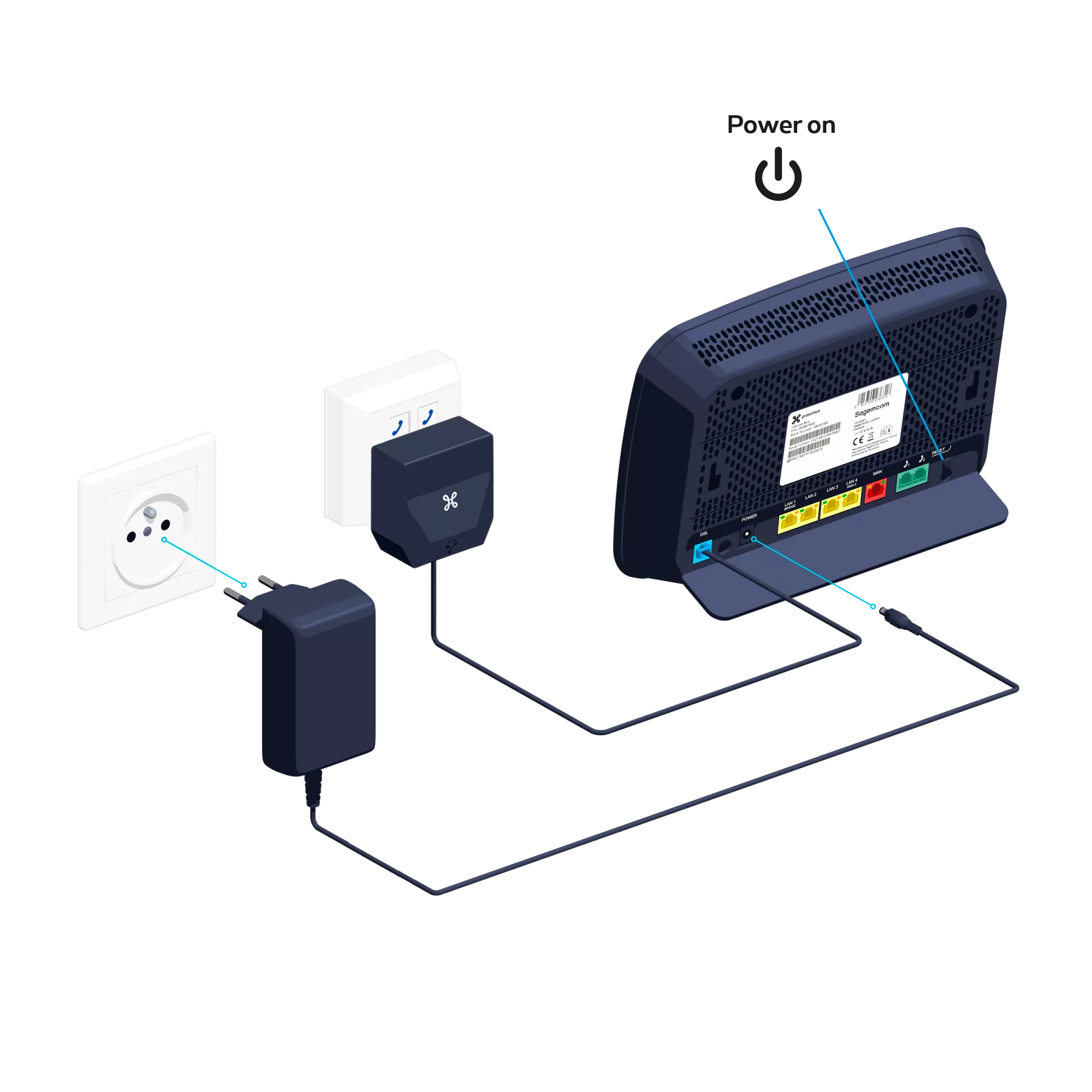 - Steek deze in de blauwe DSL-poort aan de achterkant van de Internet Box.