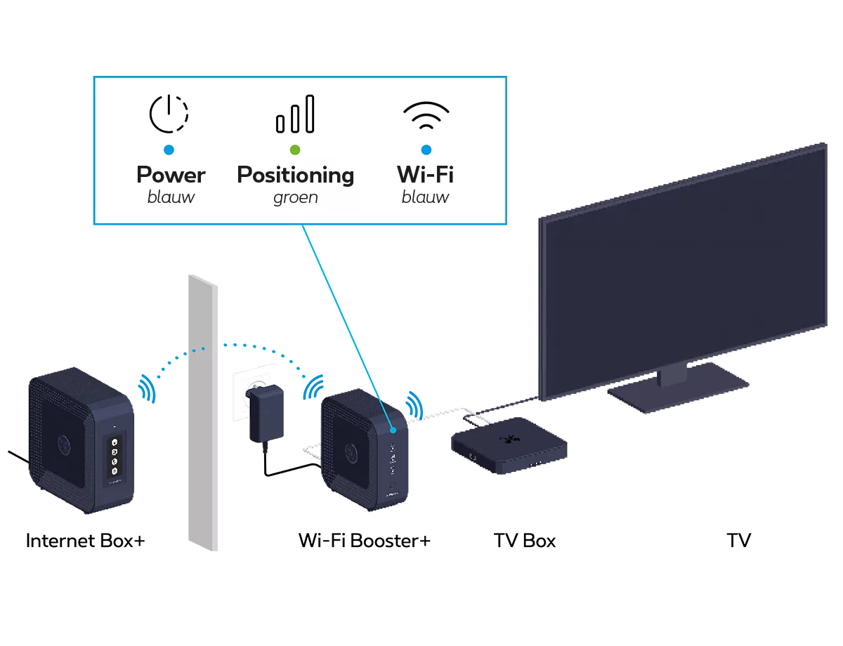 Zet de Wi-Fi Booster+ en de TV Box opnieuw aan