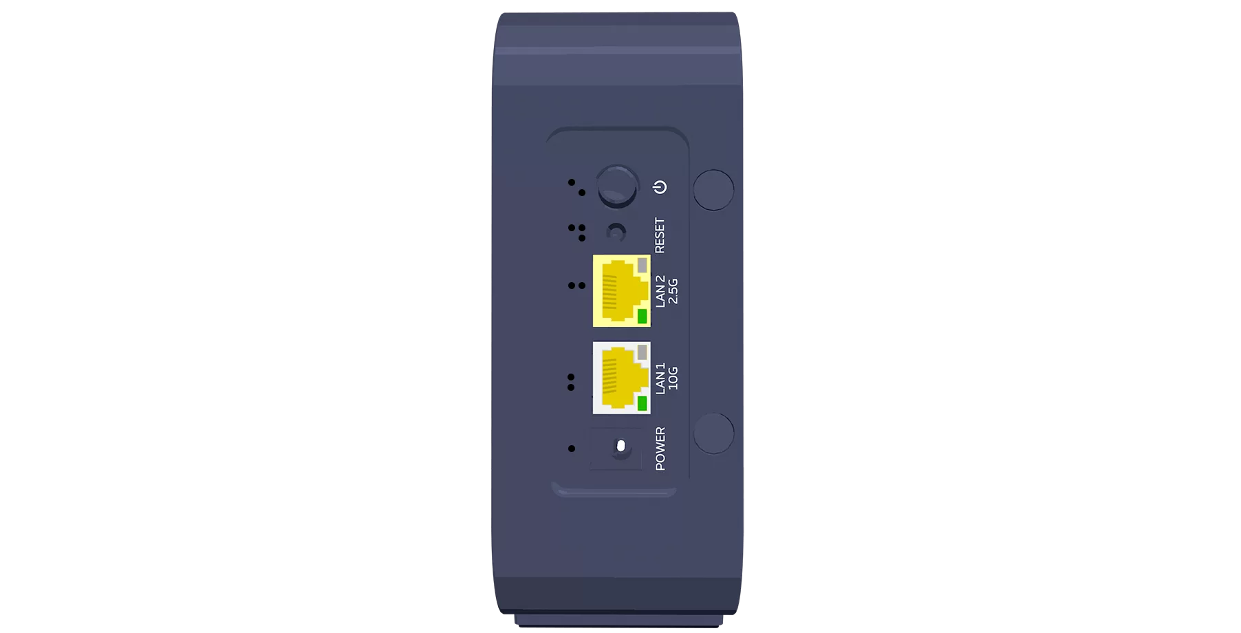 De derde gele LAN 1 2,5G-poort dient voor het aansluiten van een ethernetkabel.