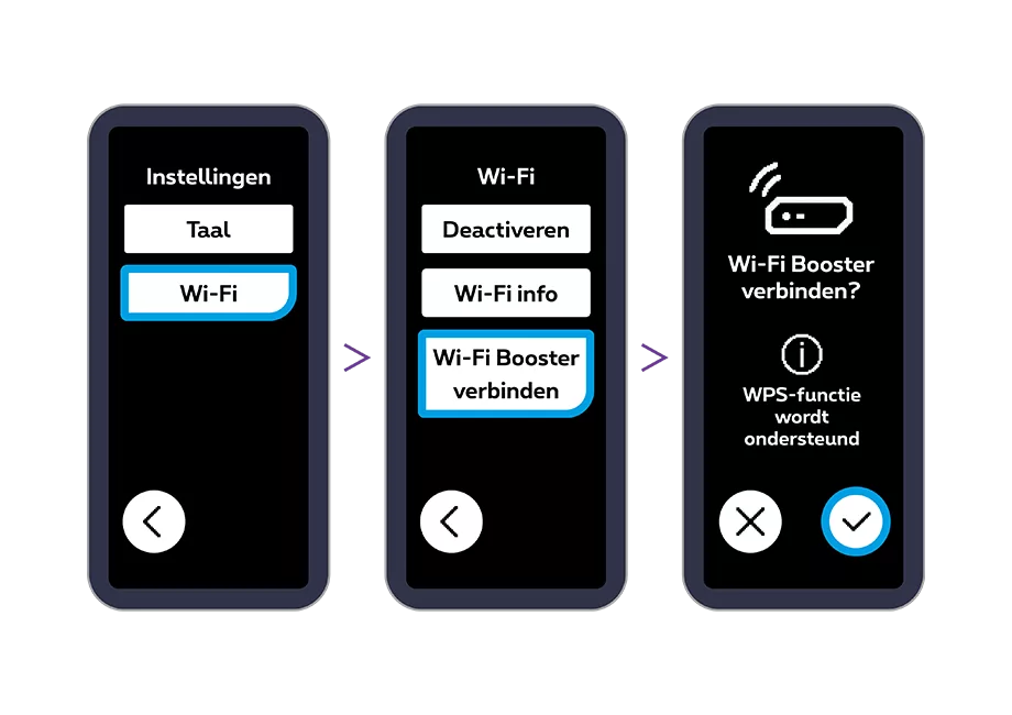Druk vervolgens op ‘Wi-Fi’, ‘Wi-Fi Booster verbinden’ en bevestig met