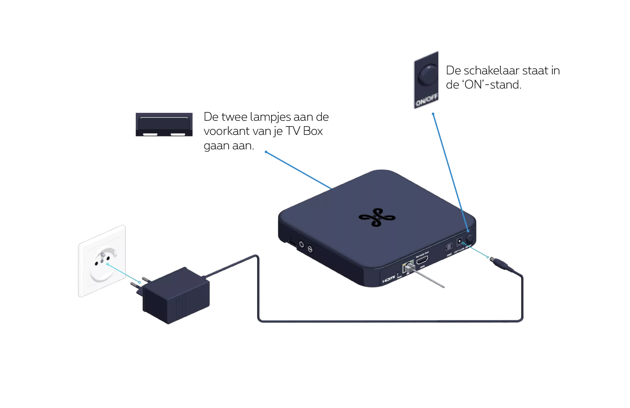 Plug de elektrische voedingskabel in je TV Box en steek de stekker in het stopcontact.