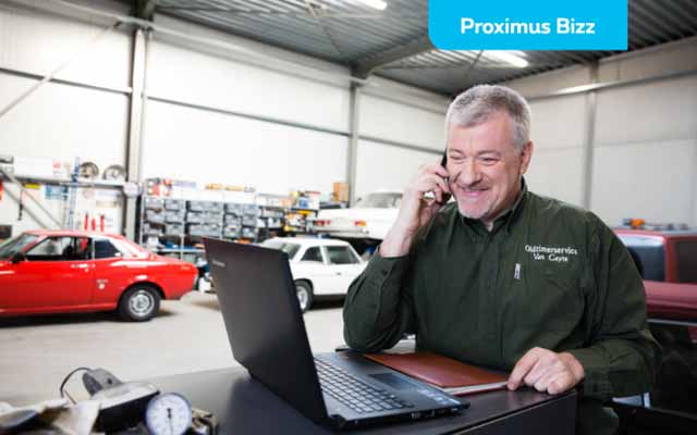 Maar niet alleen voor bestellingen is fiber van Proximus dé nieuwe manier van werken. Bij nieuwe wagens - die Cis soms ook onder handen neemt - moet je de boordcomputer uitlezen, of een nieuw besturingssysteem downloaden. “Zo gebeurd met die snelle internetverbinding!”
