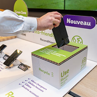 Net zo exclusief en nog steeds in samenwerking met Muvit, kan je ook oude accessoires binnenbrengen om ze te laten recycleren! De plastic hoesjes worden dan vermalen tot materiaal voor nieuwe hoesjes. De cirkel is rond! Ontdek onze inzameldozen in de winkels en lever je oude hoesjes in.