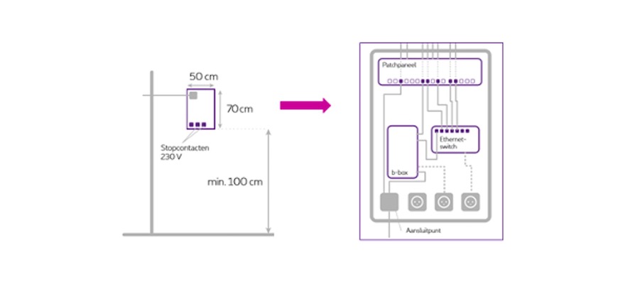 - Voorzie een ruimte van 50x70 centimeter op het aansluitingspunt, op een hoogte van minstens één meter boven de grond.