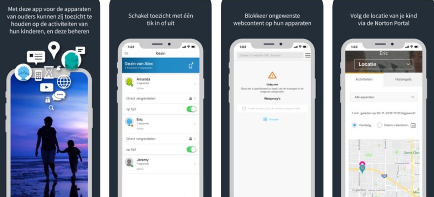 Norton is een naam die bij iedereen een belletje doet rinkelen. De antivirussoftware van het bedrijf is op heel wat computers geïnstalleerd. Niet alleen virussen worden goed opgevolgd, ook het digitale doen en laten van je kinderen kan je met Norton bijhouden. Er zitten heel wat features in het programma ‘Family Premier’, waarmee je bijvoorbeeld ook websites kan blokkeren of waarmee jij bepaalt hoeveel tijd je kids maximaal op een site mogen doorbrengen.