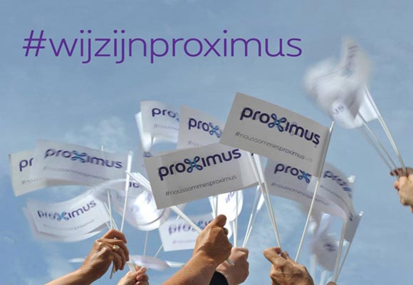 Deze vlag - hoog op de torens – is een symbool voor een bedrijf in verandering en een engagement van Proximus en zijn medewerkers om altijd dicht bij de klant te staan.
