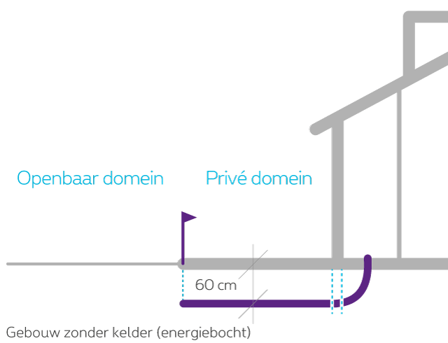 - Graaf een rechtlijnige sleuf met een diepte van 60 cm tussen de woning en/of kantoor en de rooilijn