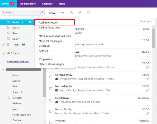 Das war's! Sie haben nun Ihr E-Mail-Konto zu Proximus Webmail hinzugefügt und es wird auf der linken Seite des Bildschirms angezeigt.