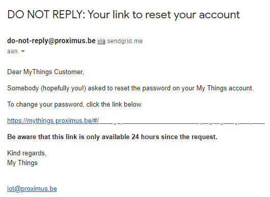 You will receive an e-mail containing a link to reset or change your password. This link remains valid for 24 hours.