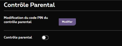 - Activer ou désactiver le contrôle parental : appuyez sur le bouton à côté de Contrôle parental.