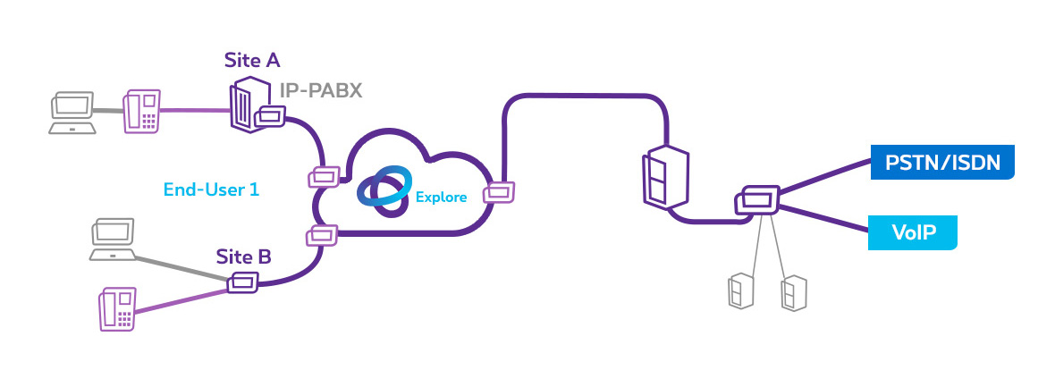 On top of Corporate network optimisation, multi-site architecture relying on Explore IP-VPN allows your customer to freely place intra-company calls or reach the world relying on Proximus extensive network.